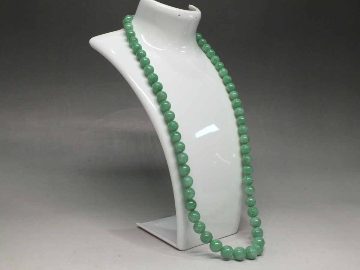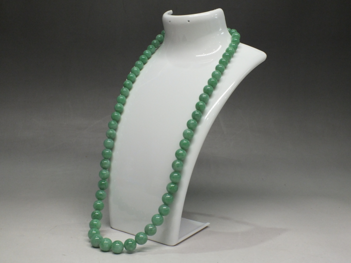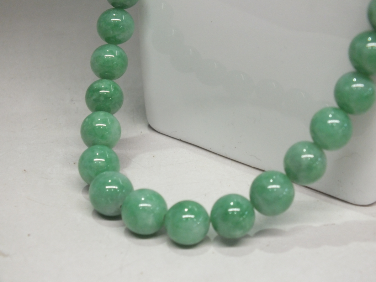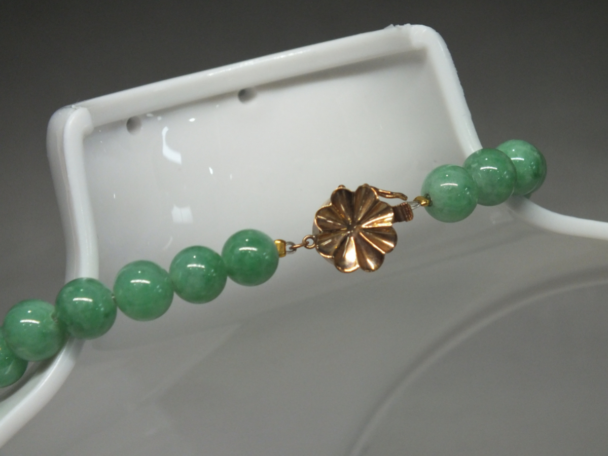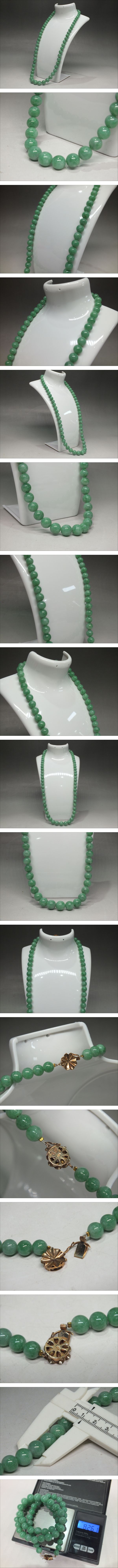 最高級品 翡翠/ヒスイ/ジェイダイト ネックレス 留め具 K14 玉約8㎜~11㎜ 重量82.6g 首回り約58㎝ 資産家放出品 | |||