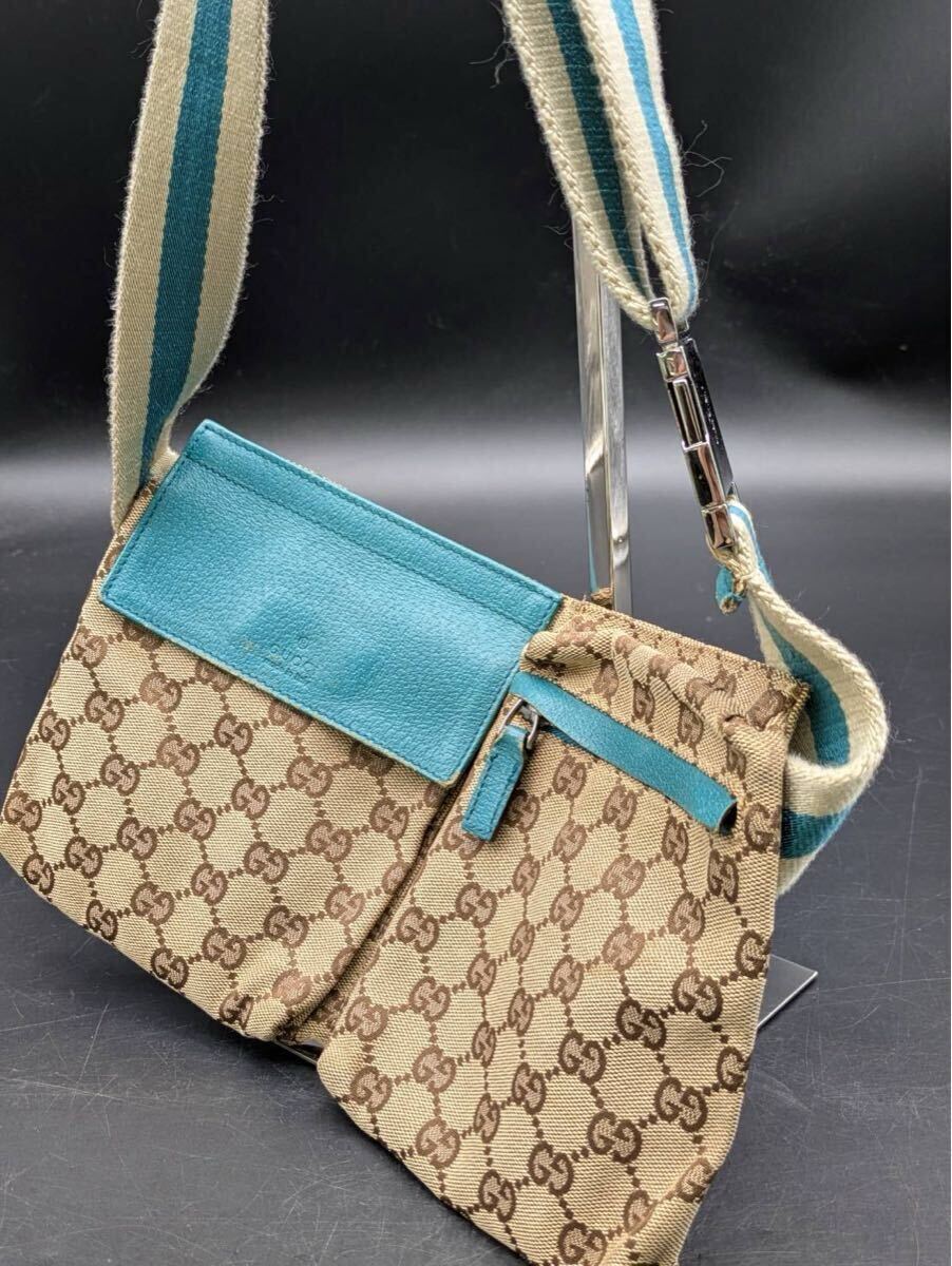 夏本 10月 No.90 GUCCI グッチ ウエストバッグ 28566 002058 バッグ カバン GGキャンバス ウエストポーチ 汚れ折れ癖あり 收藏