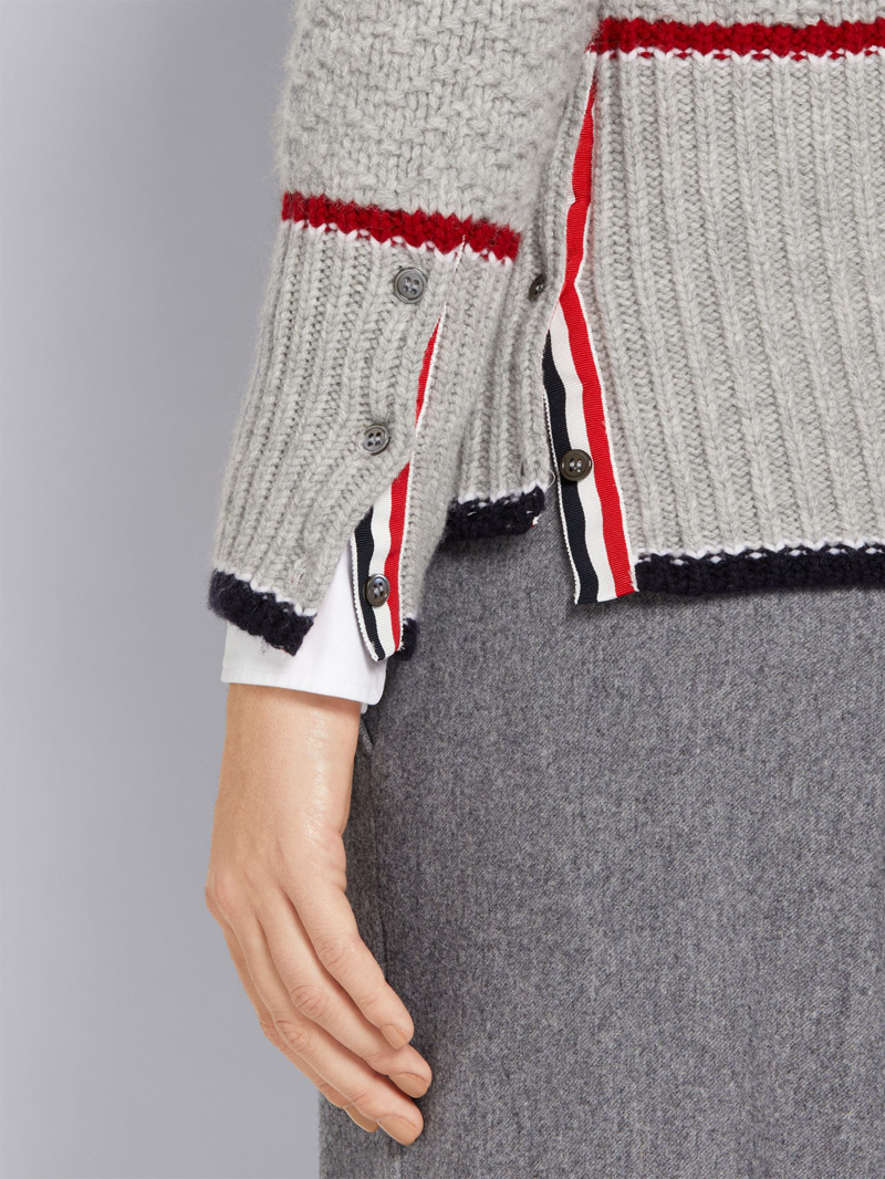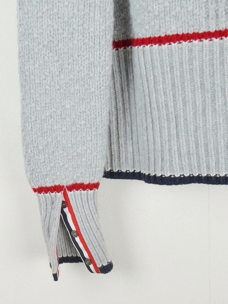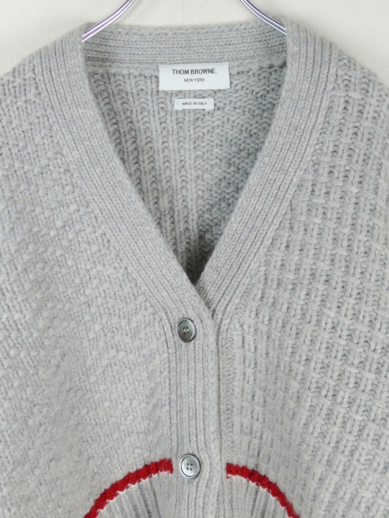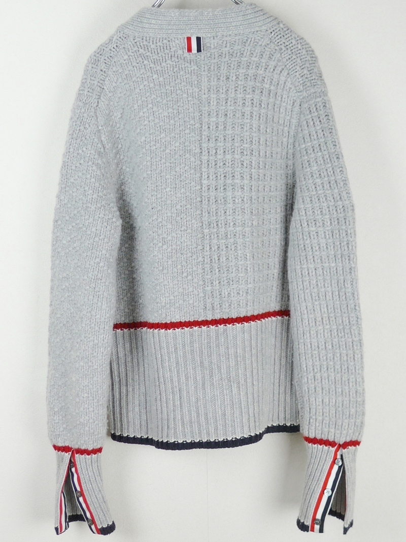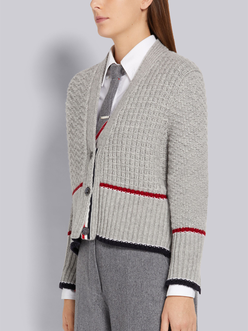 THOM BROWNE トムブラウン Fine Merino Wool V-Neck Cardigan トリコロール メリノウール カーディガン38グレー レディース イタリア製 收藏