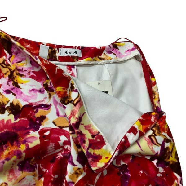 未使用 モスキーノ MOSCHINO カジュアルパンツ 花柄 ビジュー 赤 コットン 38 S 7号 レディース S5V140 收藏