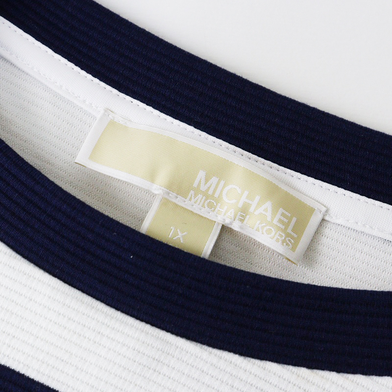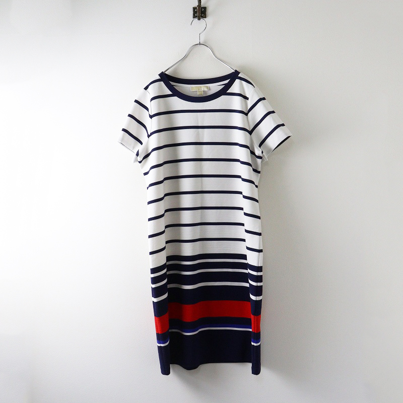 大きいサイズ マイケルコース MICHAEL KORS トリコロールカラーボーダー ストレッチワンピース 1X ホワイト┃【2400014669046】 收藏