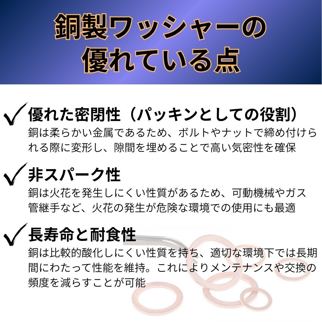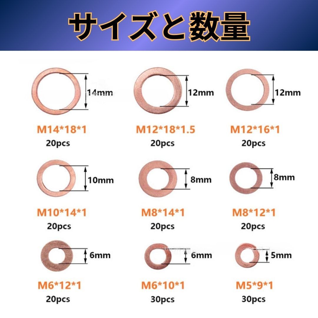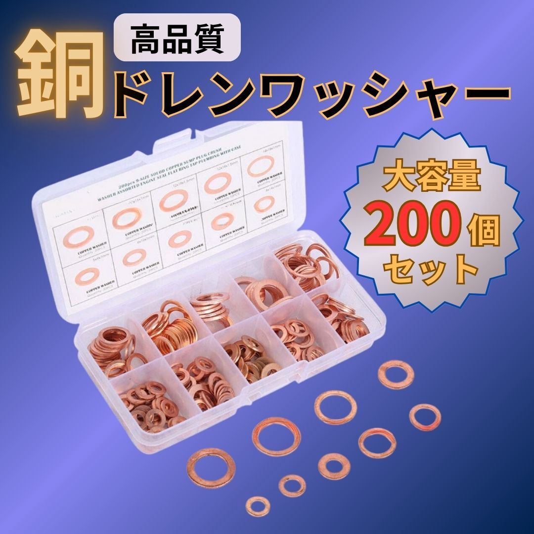 銅製 ワッシャー 200個セット ドレンワッシャー 車 バイク メンテ オイル交換 部品 ボルト ナット 座金 工具 パーツ メンテナンス 修理 收藏