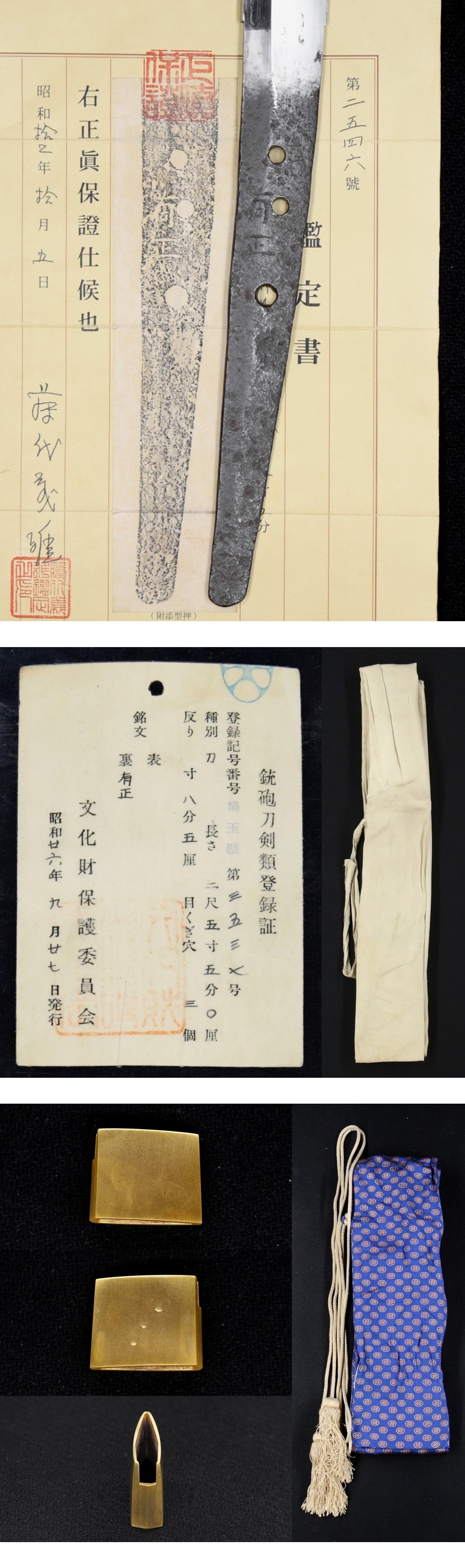 うぶ茎となっており有正の二字銘があります。本阿弥家十三代目光忠の折紙が