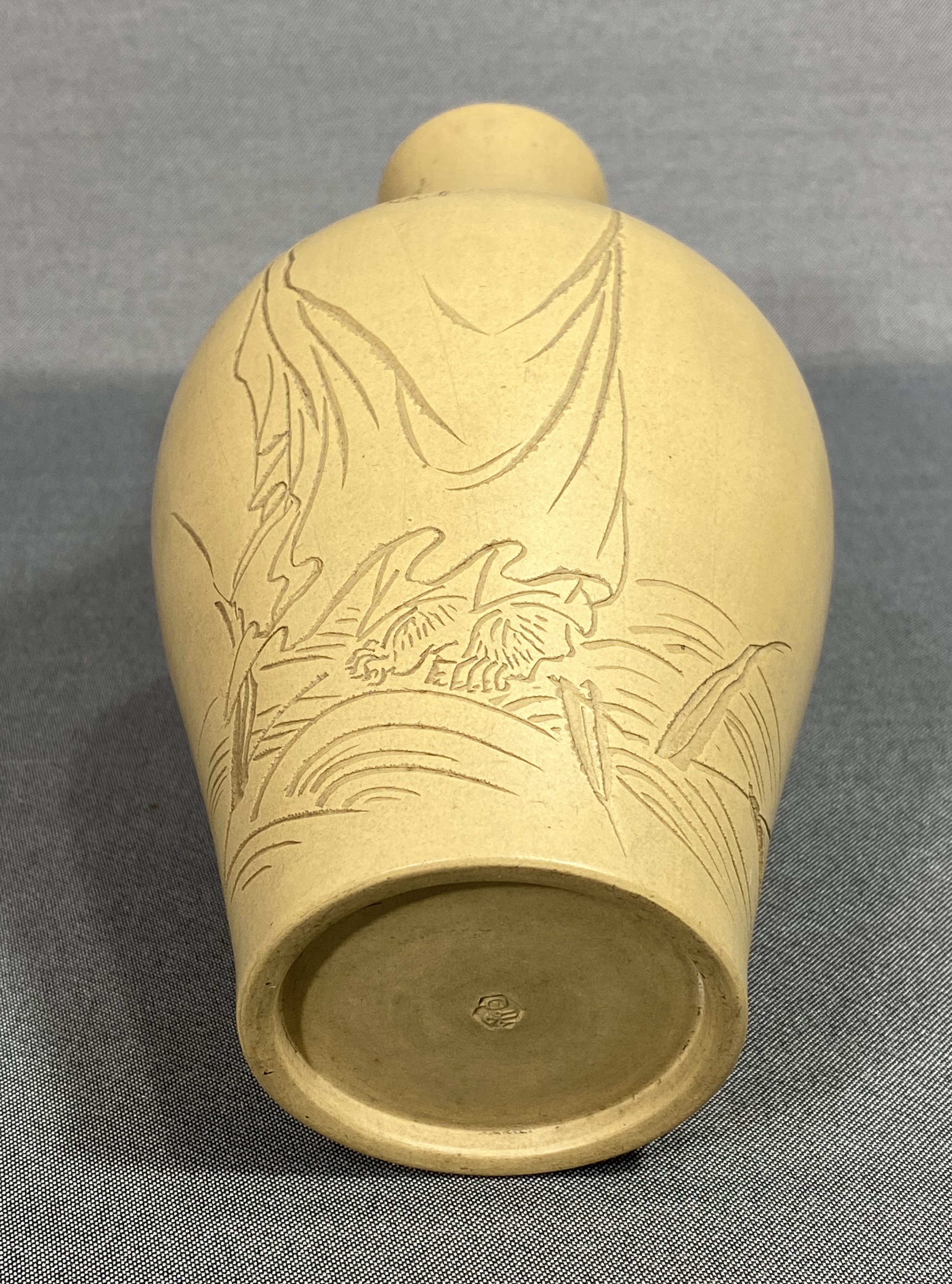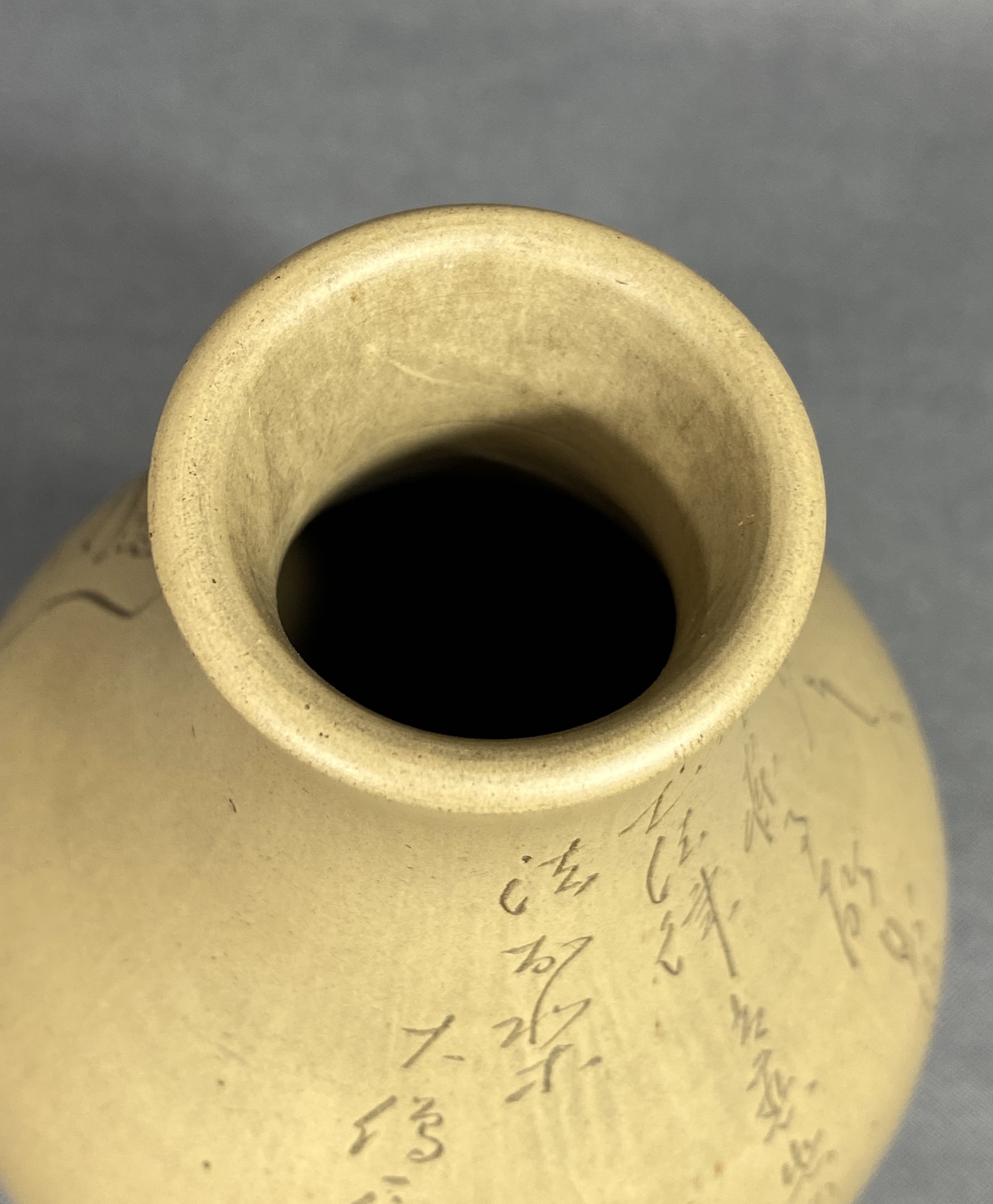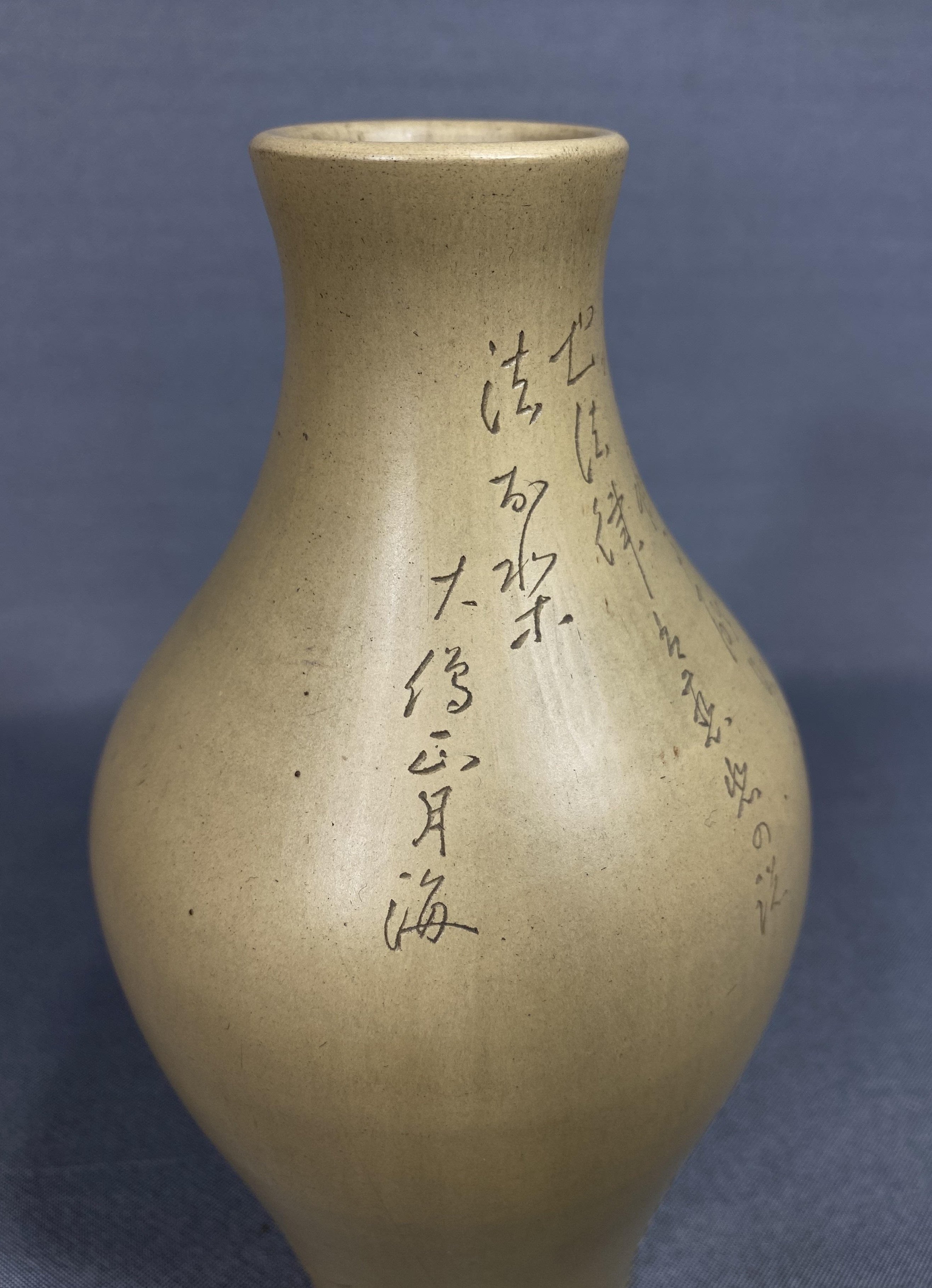 【風車】常滑名工 磯村白斎 作 売茶翁 月海元昭 詩文 達磨図 白泥 花入 煎茶道の祖▲在銘 共箱 台付▲明治時代の陶工 美品 花瓶 收藏