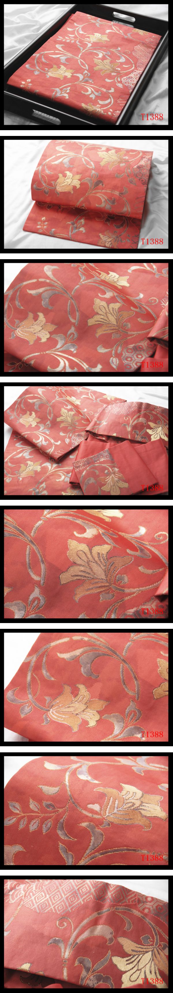 蔵【T1388】厳選逸品 唐草更紗紋 珊瑚朱色地 気品豊かに 正絹高級美術名古屋帯 ◇検◇簪着物袋帯和装小物帯締め 收藏