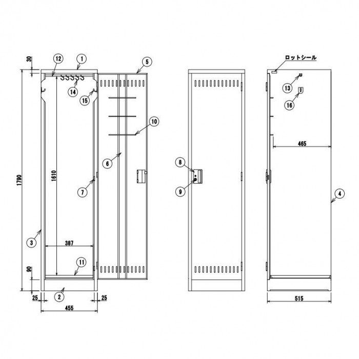 | サイズ | 外寸法:W455×D515×H1790mm、内寸法:W387×D465×H1650mm 個装サイズ:53×47×180cm |
