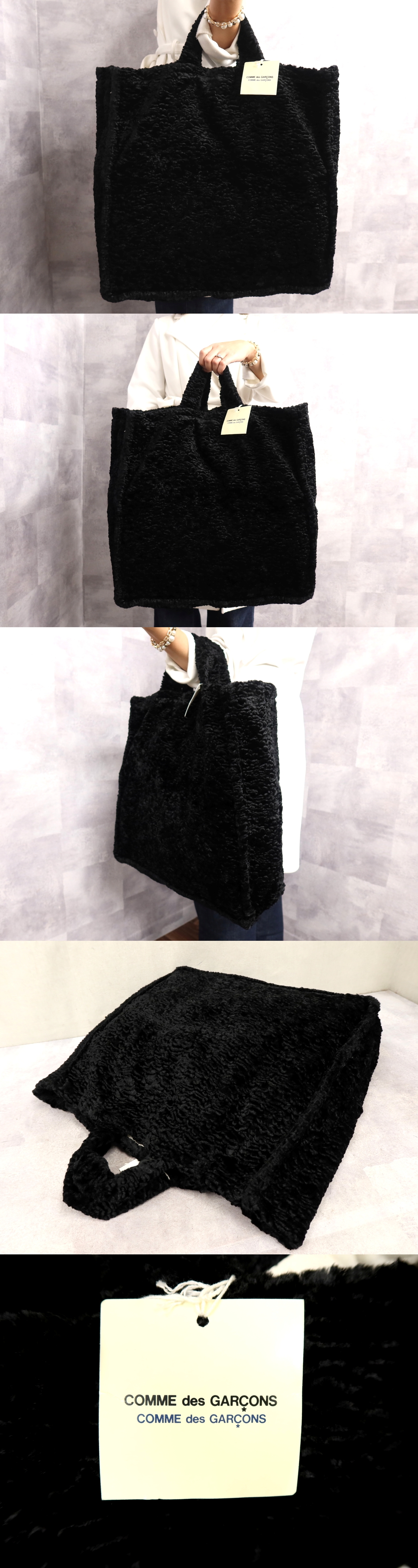 ●未使用●Comme des Garcons コムデギャルソン●レーヨン コットン●ハンド トート バッグ●黒●腕掛け●収納 かばん●Js63631