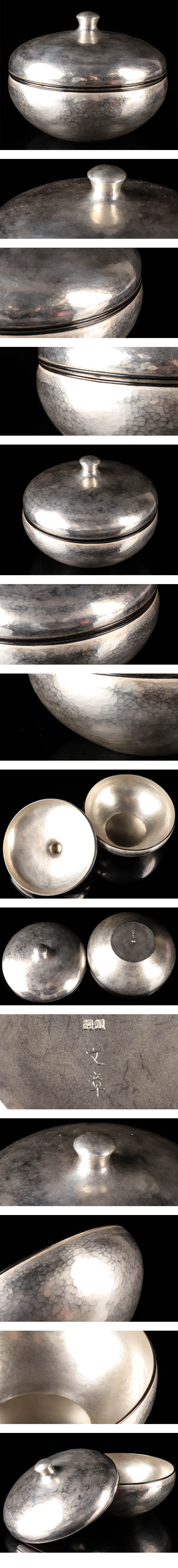 【流】純銀製 文章作 槌目打出細工 蓋物 537.1g DK455 收藏