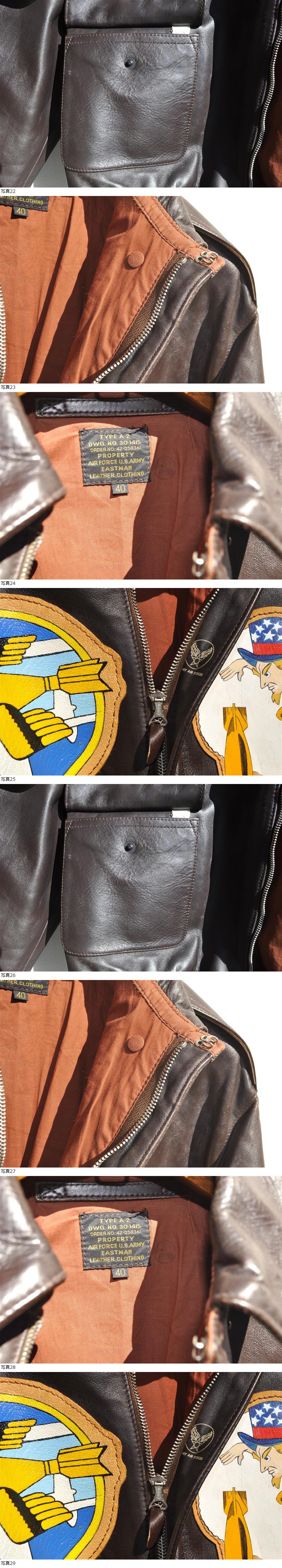 未使用EASTMAN LEATHER FULL PAINT A-2 CROWN PIN ZIPPER SIZE 40 8TH AIRFORCE 322th Bomberment SQ 收藏