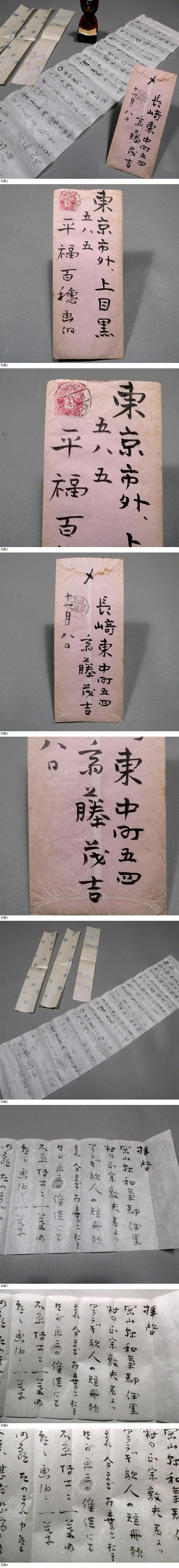 封筒にややヤケ、ややヨゴレ。中身の巻紙に少々シミ。がございます。経年による中古感はございますこと、ご了承ください。詳細は、画像をご参照くださり、ご質問もお受けいたします。