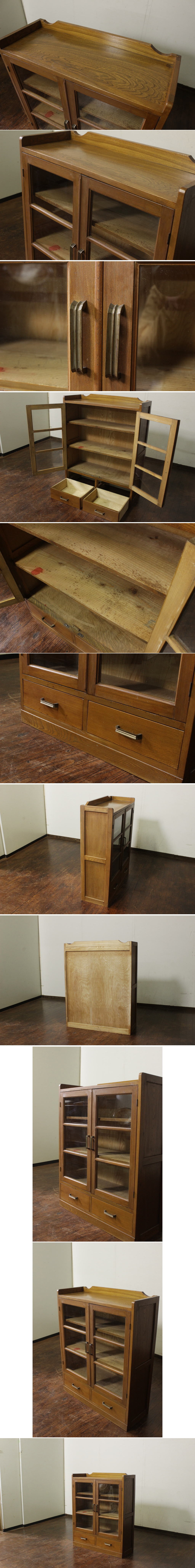 新入荷!古い木製収納棚 昭和レトロ食器棚/本棚/無垢材/飾り棚/古家具/什器/ガラスケース/古民家/アンティーク 收藏