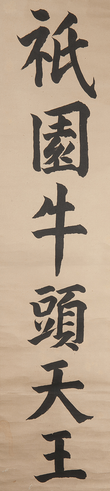 【五】花山院愛徳 一行書 『祇園牛頭天王』 紙本 墨 掛軸 箱付 二重箱 茶掛 真作 收藏