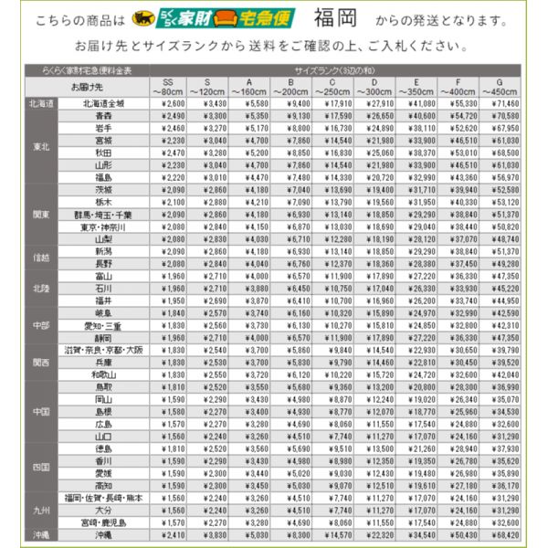 | 発送は家財おてがる便Cランクです。 https://form.008008.jp/mitumori/PKZI0100Action_doInit.action こちらから送料を計算出来ますのでご確認ください。 | |||