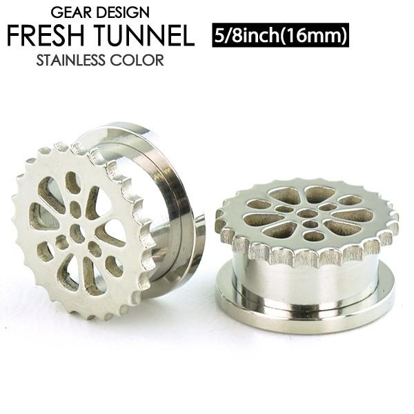 フレッシュトンネル ギア3 デザイン 5/8inch (16mm) サージカルステンレス316L(医療用) ボディピアス スタイリッシュ クール イヤーロブ