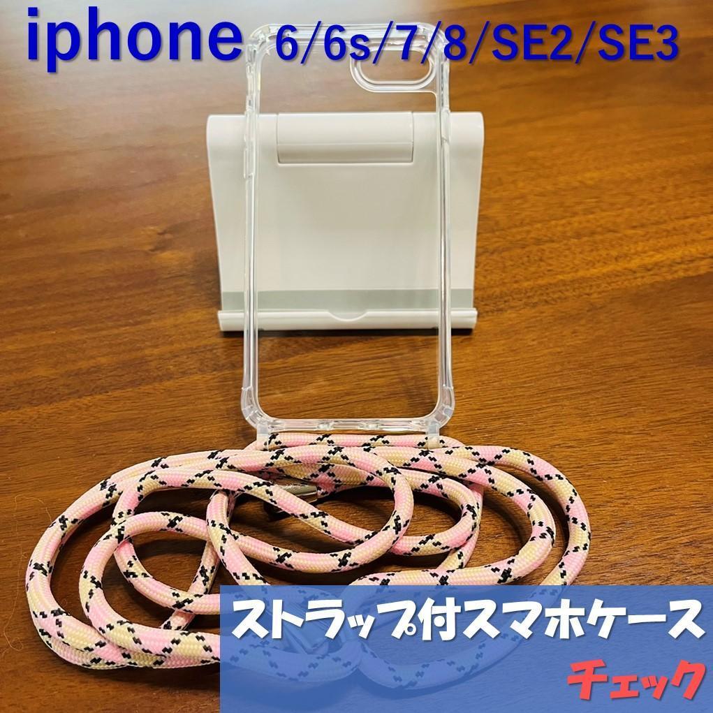 iPhone SE 8 7 6s アイフォン ショルダーストラップ 付き クリア カバー ケース 第2世代 第3世代 ストラップ 肩掛け チェック 收藏