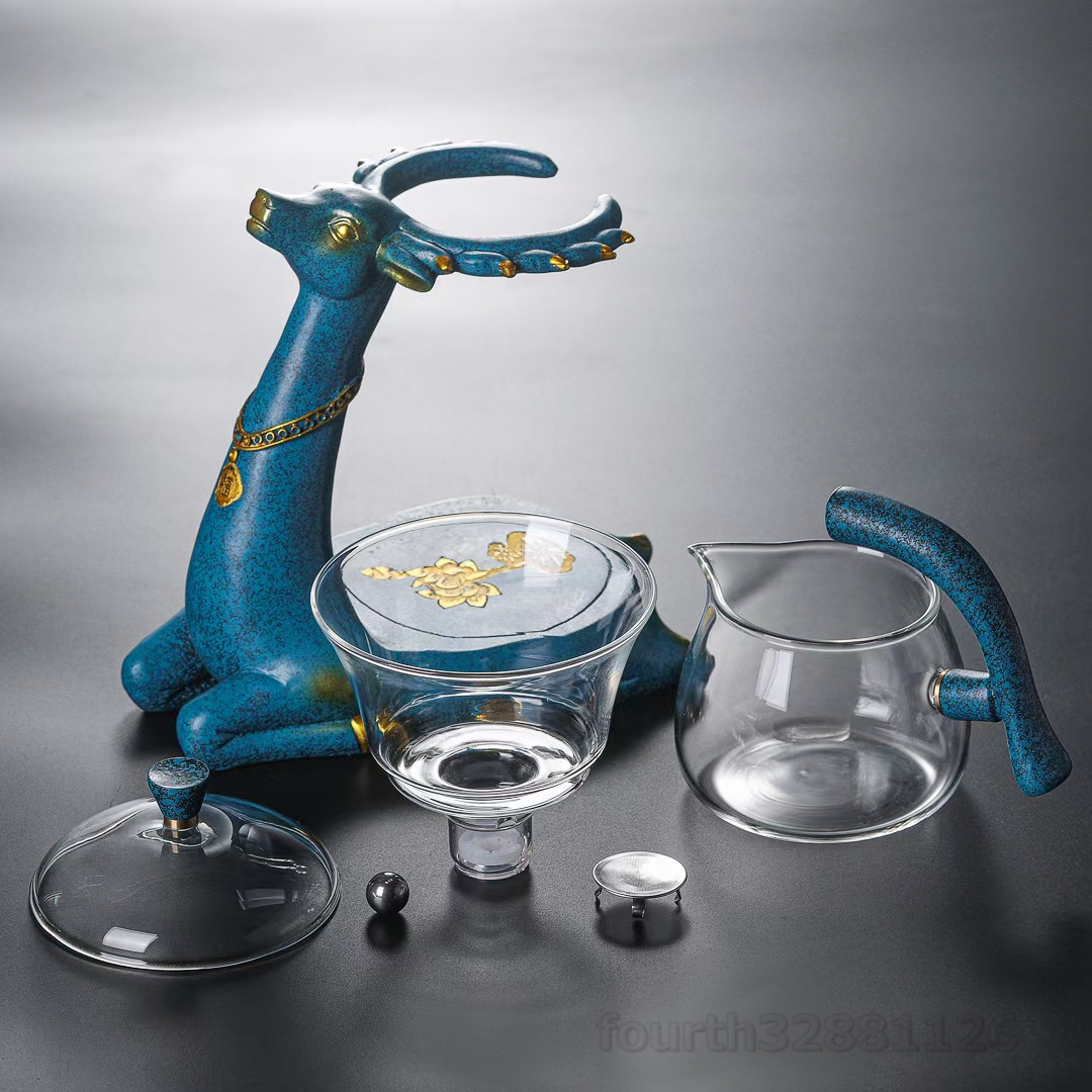 CHQ1608#良品 煎茶 鹿 道具 茶器 茶具 ガラス ティーポット やかん ケトル コーヒー お茶 紅茶 自然樹脂 アンティーク ガラス ギフト 装飾 收藏