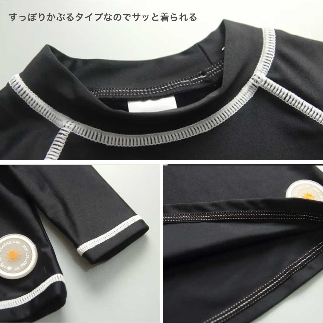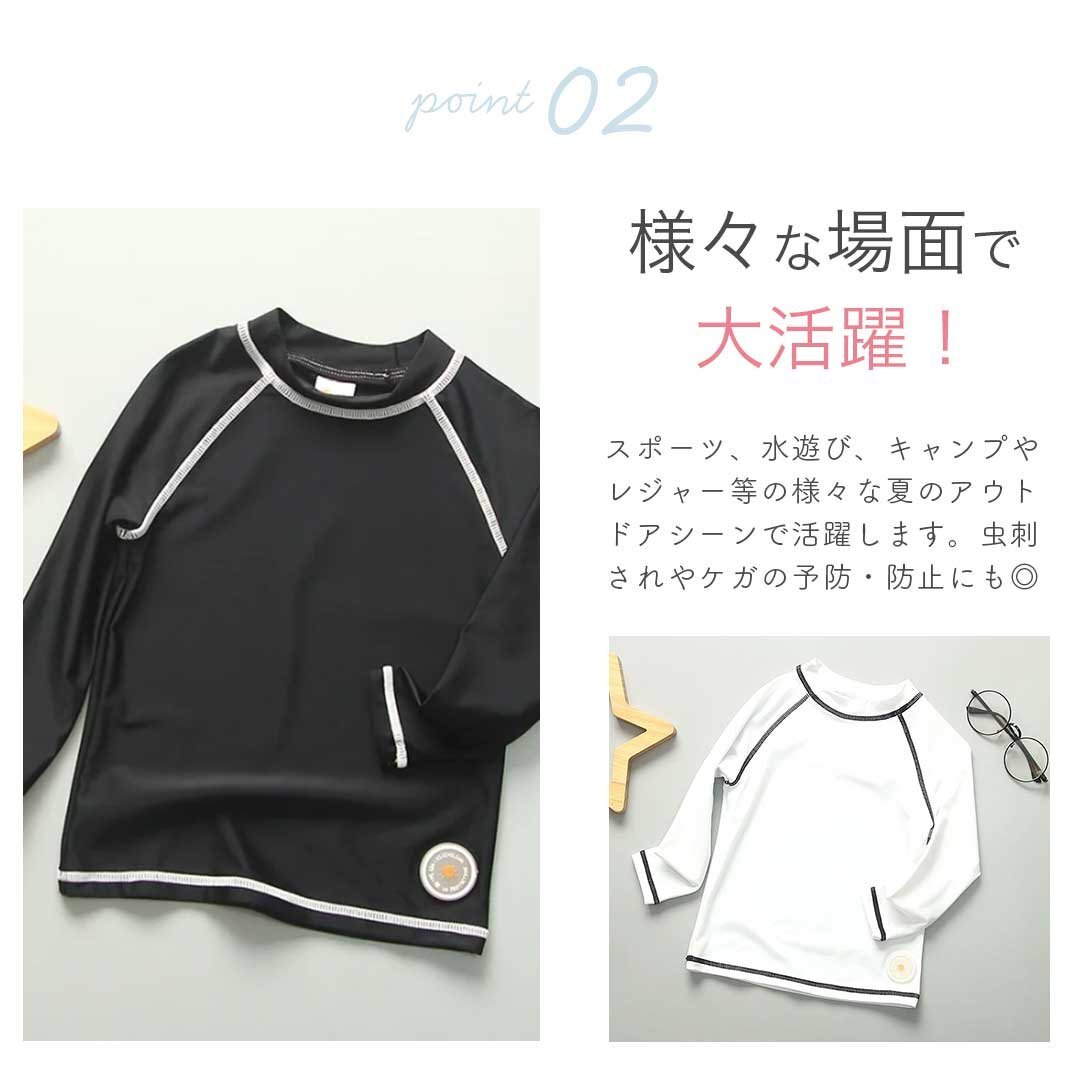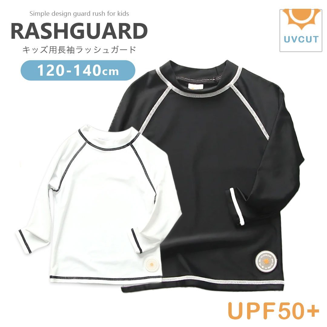 子供用 ラッシュガード トップス 2カラー 3サイズ ビーチウエア 長袖 ホワイト ブラック 120 130 140 UPF50+ こども 子供用 男の子 女の子 ジュニア キッズ UV対策 紫外線対策 日除け 日焼け対策 日焼け防止 熱中症対策 ケガ予防 怪我防止 ケガ防止 uv マリンスポーツ 水陸両用 夏 外出 スポーツ ビーチ 海 海水浴 プール 山 川 旅行 プレゼント アウトドア キャンプ レジャー 公園 アクティビティ フィットネス マリンスポーツ 保護 水着 サーフウェア ビーチウェア スイムウエア