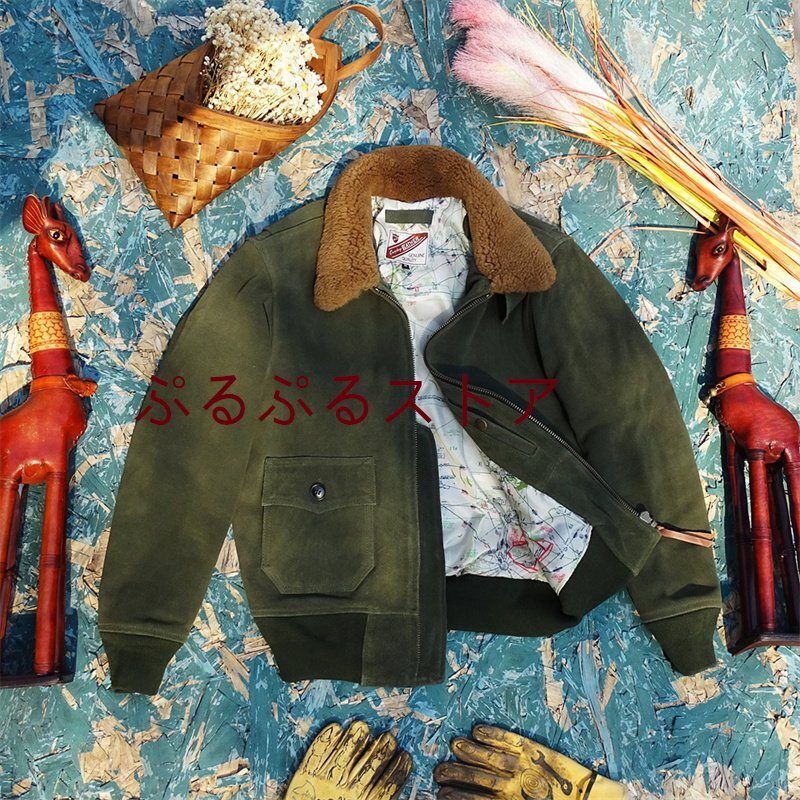 [ぷるぷるストア]G9レザージャケット 本革 牛革スエードジャケット ウール襟 ライダースジャケット 革ジャン S~4XL グリーン 收藏