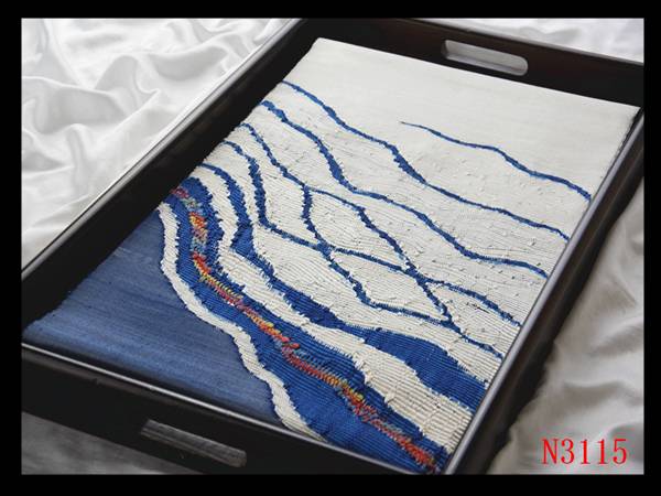 A【N3115】厳選美品 紬地 手織り 象牙色地瑠璃紺色 気品豊かに 正絹高級美術名古屋帯 ◇検◇簪着物袋帯名古屋帯帯締め 收藏