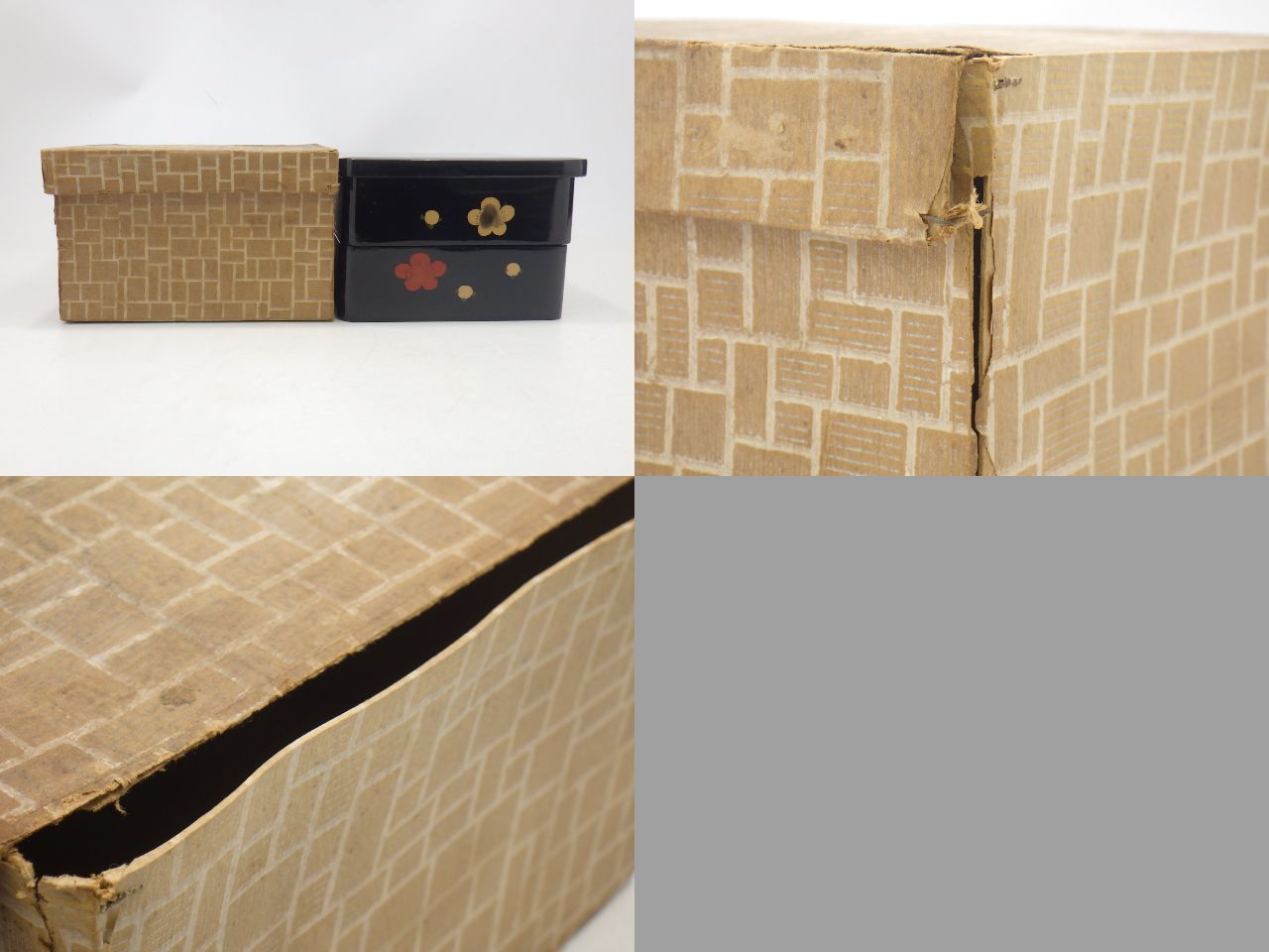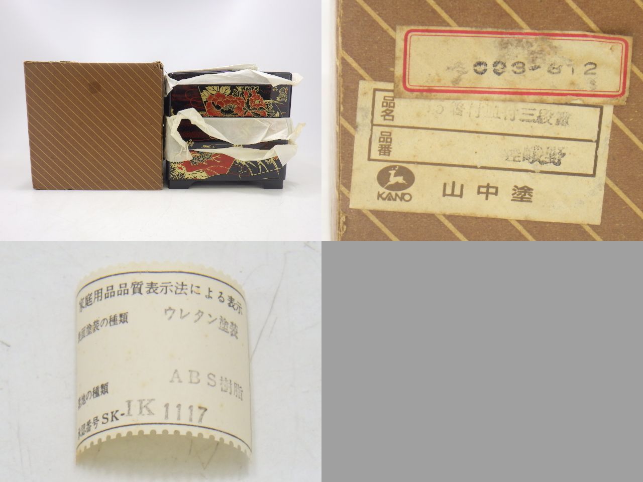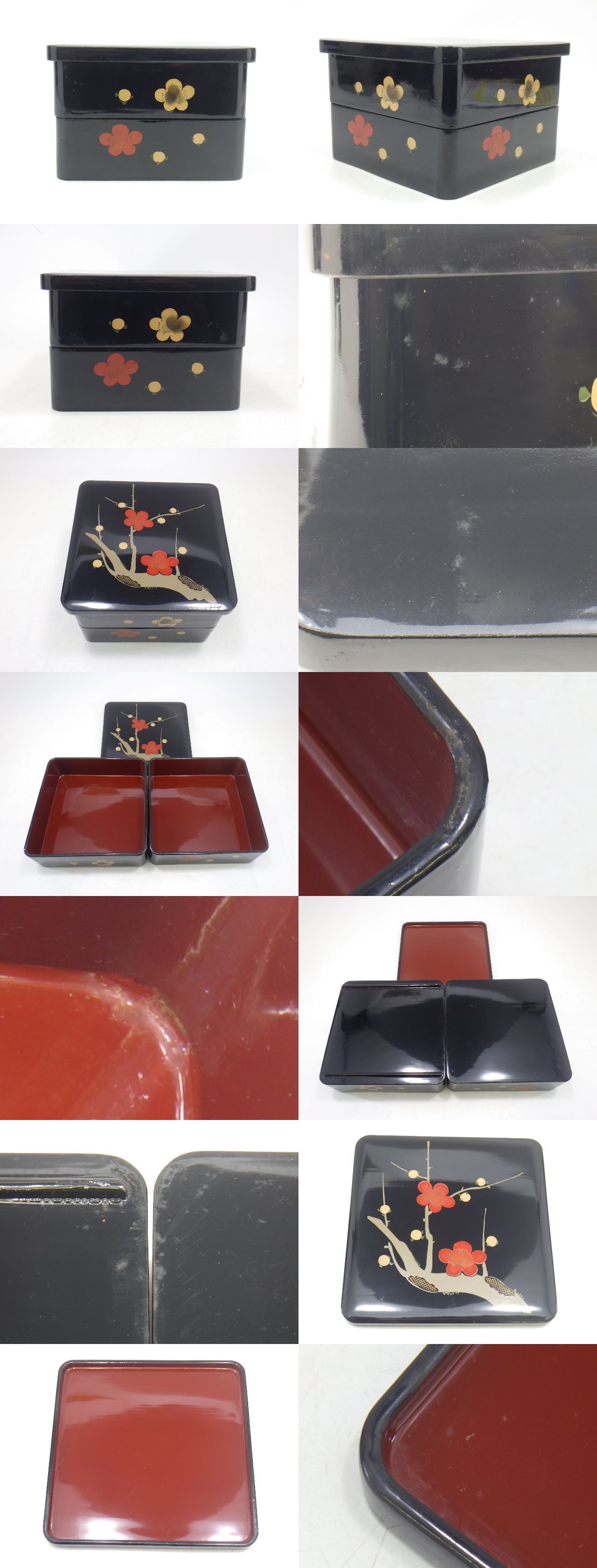 ※下記、【商品詳細】及び【落札後のご案内・注意事項・備考】欄をお読みいただき、ご理解頂いた上でご入札頂けますようお願い致します。 ![]() ![]() ![]() ![]() ![]() 《商品詳細 》 ◆重箱 山中塗 箸 皿付 三段重/木製 梅文 二段重 未使用 2点を出品致します。 ◆山中塗 箸 皿付 三段重 素地/ABS樹脂 ウレタン塗装 サイズ/約19.5×19.5cm 高さ約18.5cm 皿/直径約13.5cm 5枚 ◆木製 梅文 二段重 約19×19cm 高さ約12.5cm *素人採寸の為、多少の誤差はご容赦下さい。 ◆箱入り 《商品状態 》 ◆未使用・長期保管品となります。 ◆長期保管時に伴う擦れや汚れがございます。 ◆箱/破れや汚れ等の傷みがございます。 [ ※商品についての注意事項 ] ◆ いずれも画像を良くご確認頂き、ご自身の判断で納得されたうえで入札をお願い致します。 ◆ 画像につきましてはデジカメ撮影の為、実際の色合いと異なる事もありますのでご了承ください。 | ||||