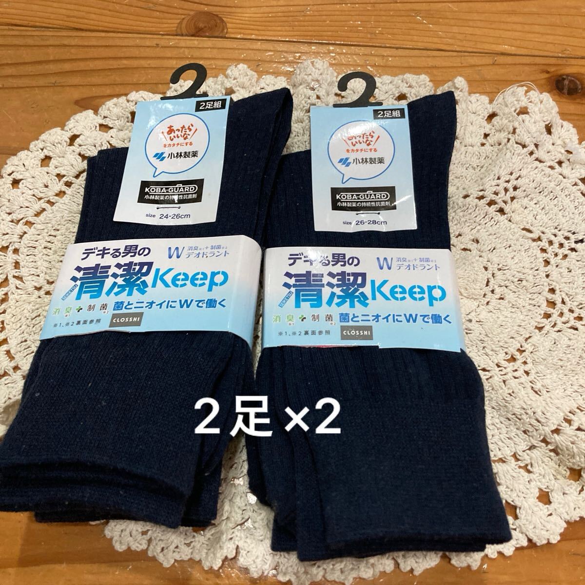 新品即決送料無料♪小林製薬×CLOSSHI デキる男の清潔Keep 靴下 24-26㎝ ネイビー 2足組×2 吸水速乾 消臭 制菌 收藏
