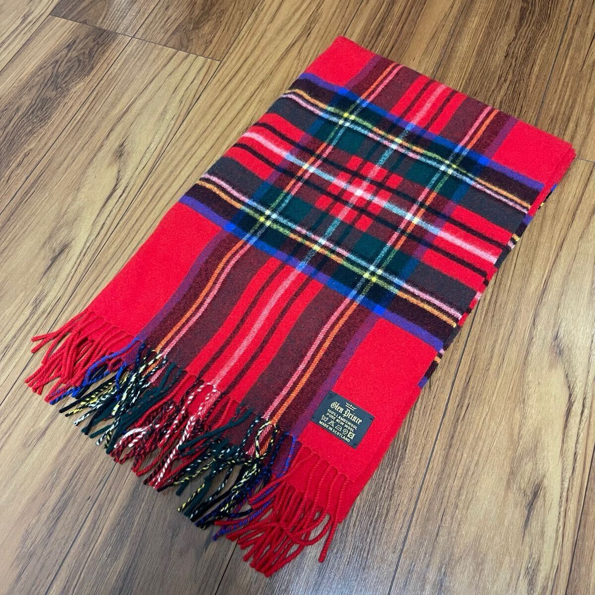 Glen Prince グレンプリンス 大判ストール スコットランド製 ウール 赤 チェック 膝掛け マフラー ストール タータンチェック 收藏
