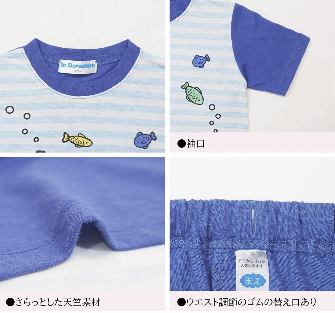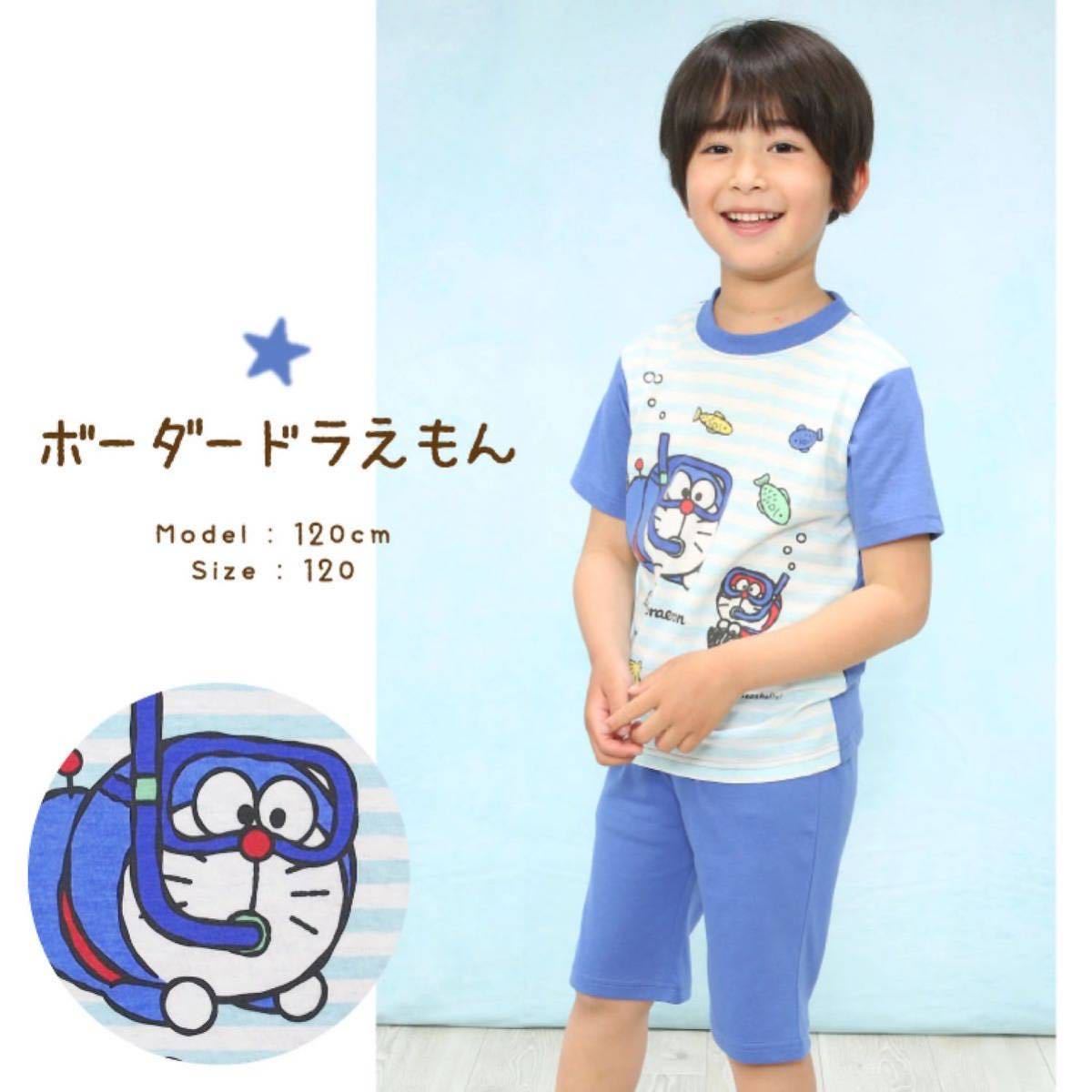 新品60490ドラえもん120cm青ボーダー半袖パジャマ ルームウェア 半袖半ズボン シュノーケリング 收藏