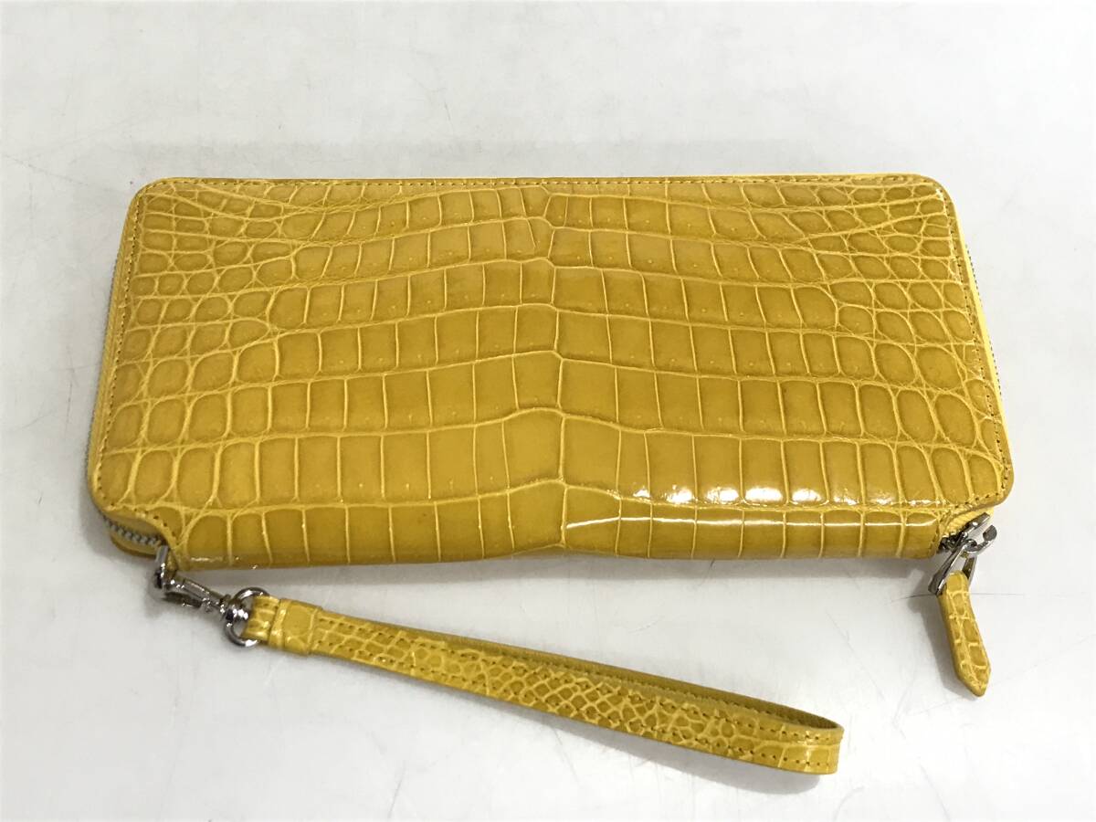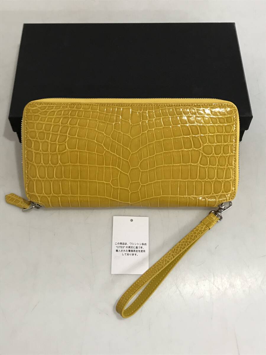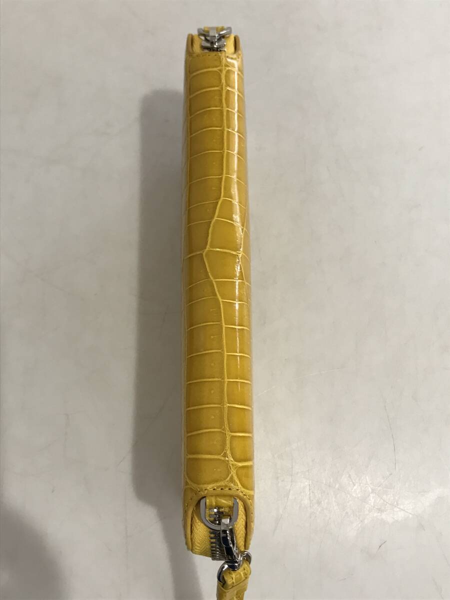 HG7652 クロコダイル マルチケース ラウンドファスナー ワニ革 レザー 山吹色 イエロー系 箱付き 未使用品 收藏