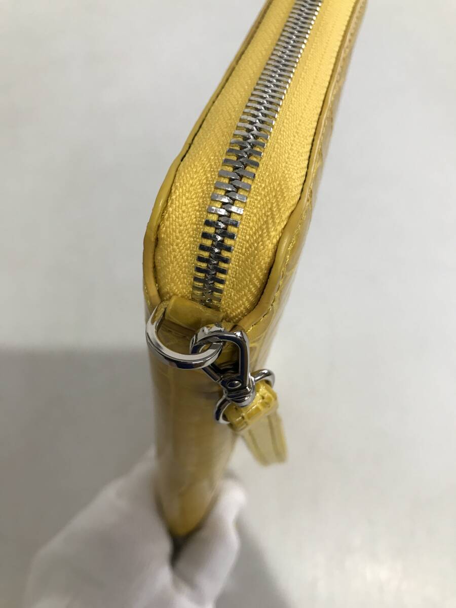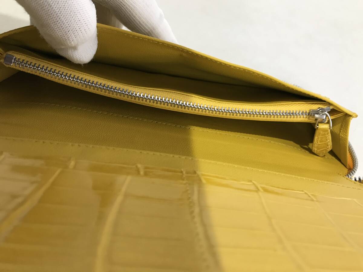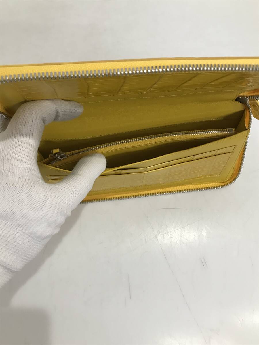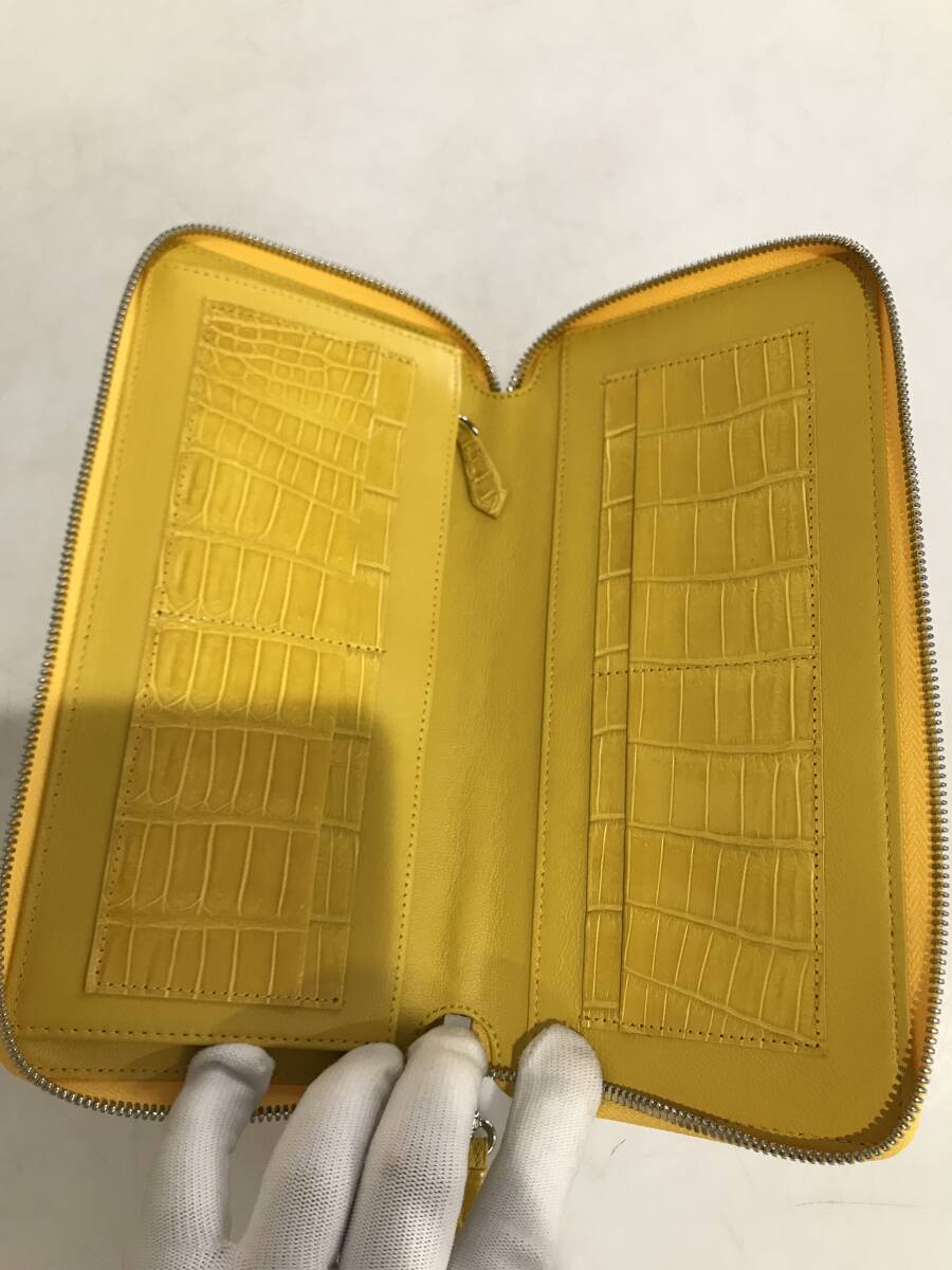 HG7652 クロコダイル マルチケース ラウンドファスナー ワニ革 レザー 山吹色 イエロー系 箱付き 未使用品 收藏