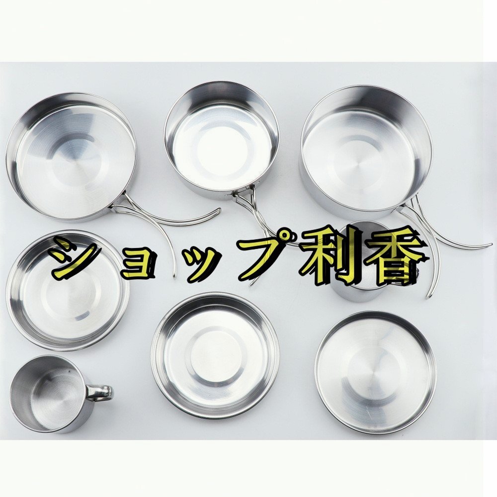 LHH318★ステンレスマグ8点セット 食器 ステンレス製 <携帯袋付>キャンプ用品 クッカー セット キャンプ用鍋 アウトドア調理器具 アルミ 收藏