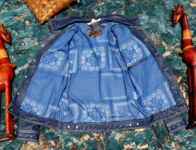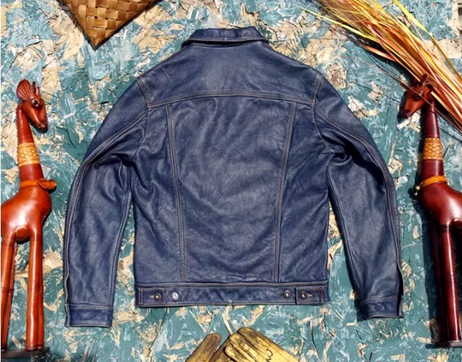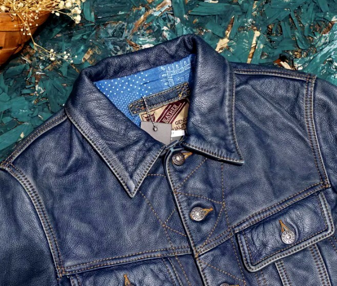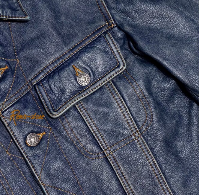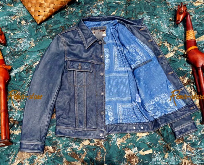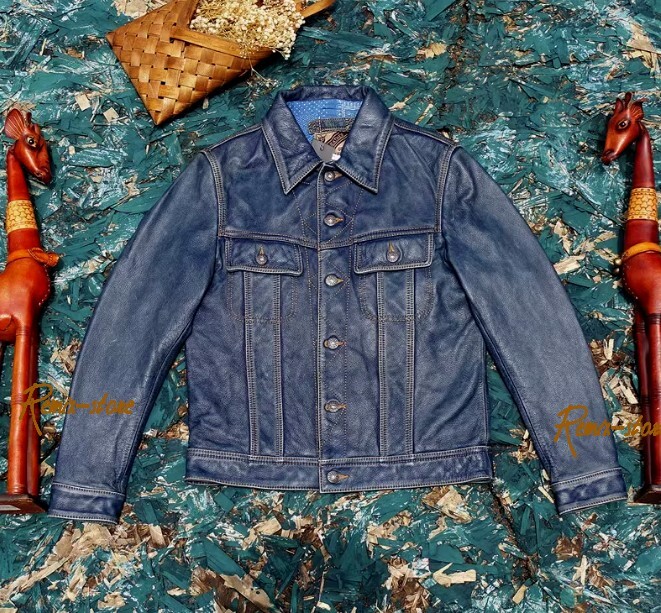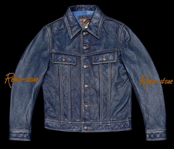 ★人気 藍染 インディゴ 茶芯 ブリーチ レザー ジャケット LEEライダースタイプ S〜3XL メンズ ヴィンテージ ストームライダー レトロ★671 收藏