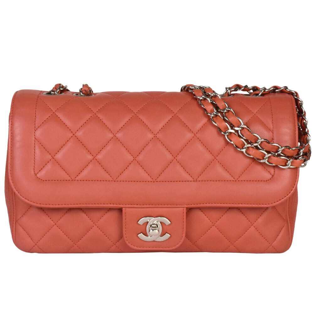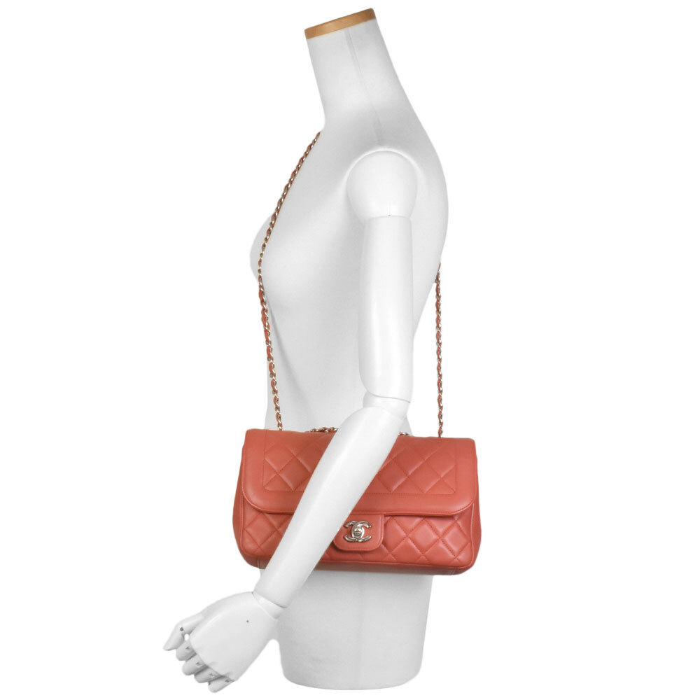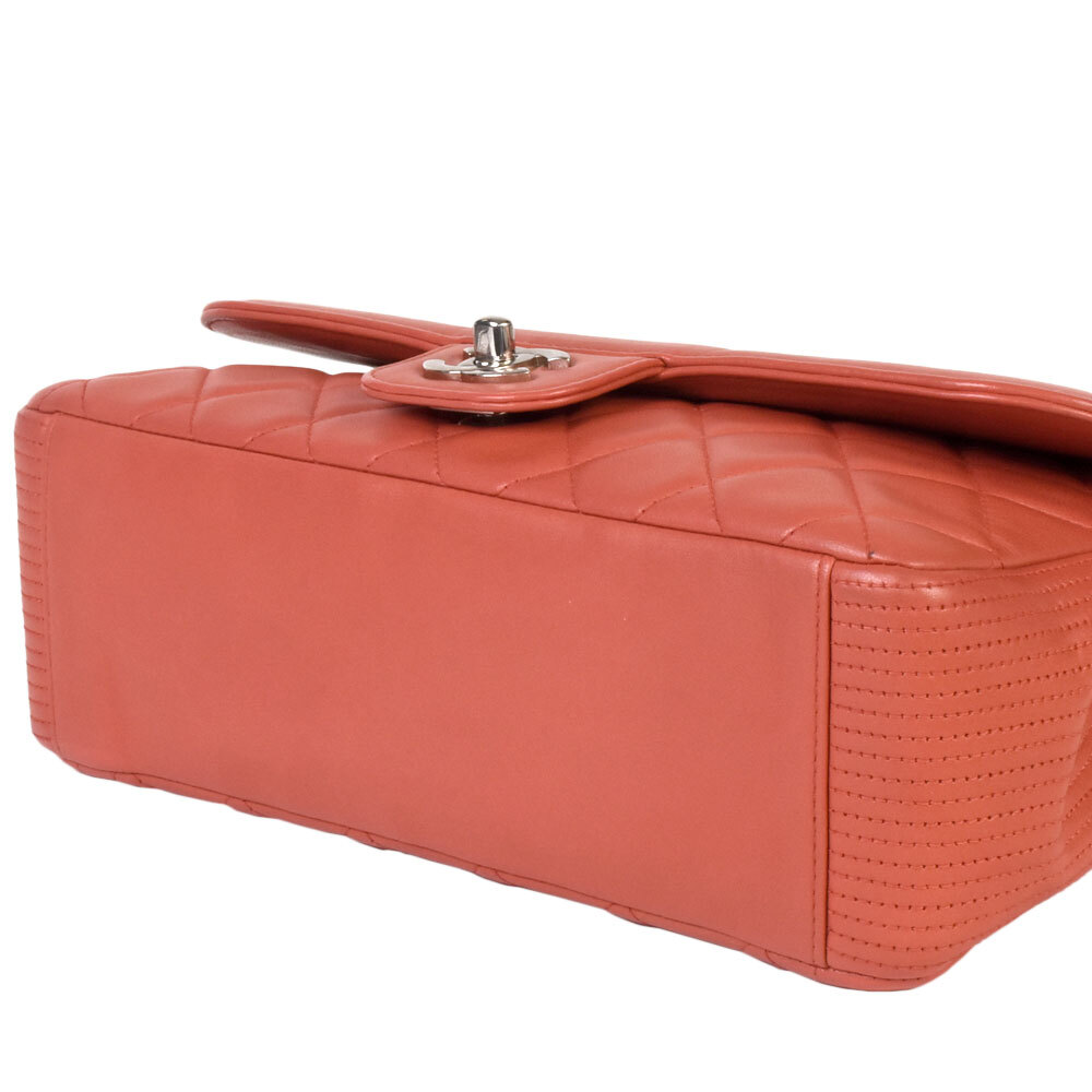 シャネル CHANEL ココマーク マトラッセ25 Wチェーン ショルダーバッグ ラムスキン オレンジ シルバー金具 8桁 14番台 サーモンピンク 收藏