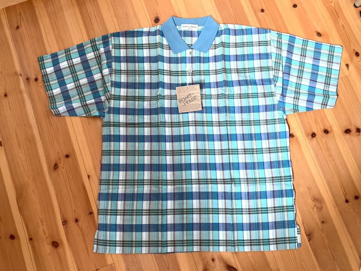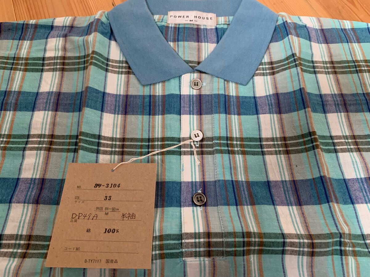 Y673 未使用タグ付き POWER HOUSE パワーハウス チェック柄 ポロシャツ 半袖シャツ 半袖 Yシャツ Mサイズ さわやか 青系 收藏