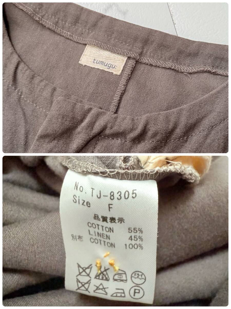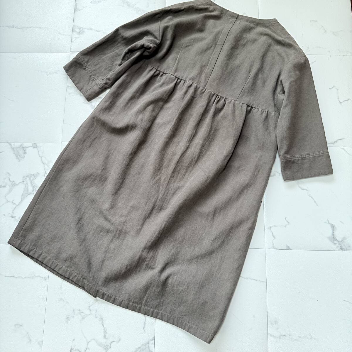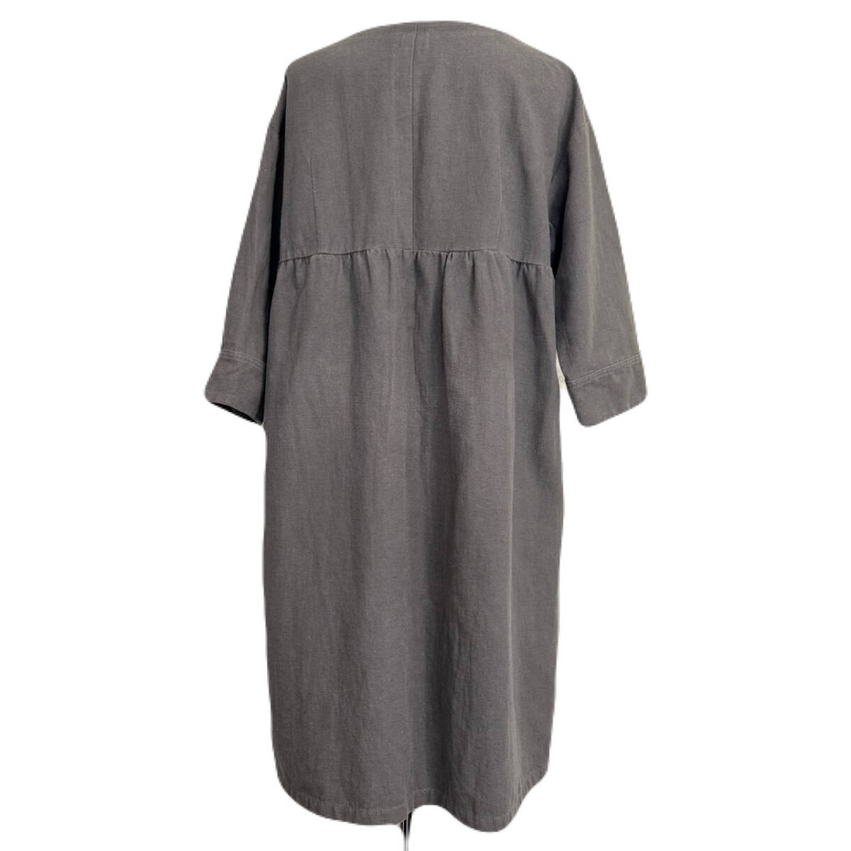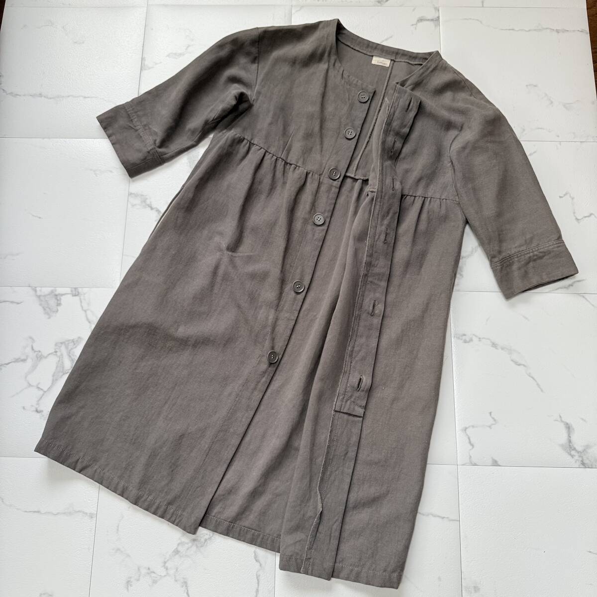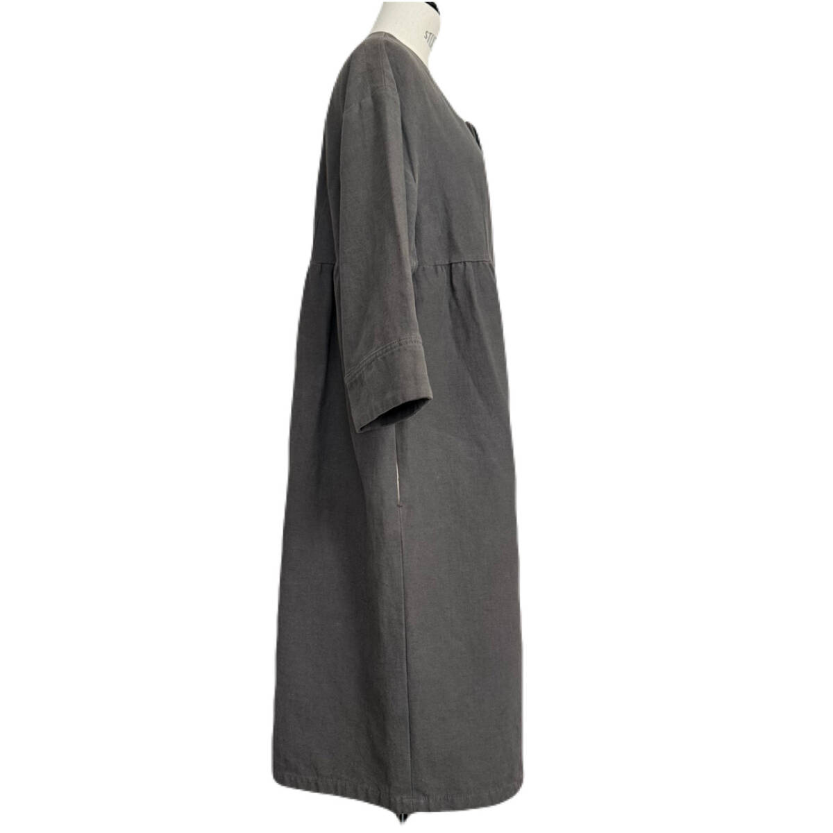 | ★ 商品名★ tumugu ツムグ コットン リネン 綿 麻 七分袖 コート ワンピース サイズ F グレー 染物 ★ |