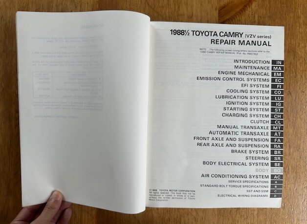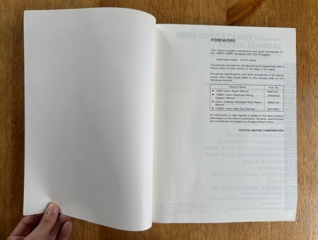 TOYOTA Camry 1988 Repair Manual USA仕様英語版 收藏