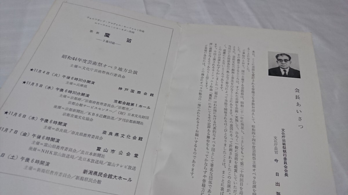 昭和44年度 芸術祭特別公演 オペラ モーツァルト作曲 魔笛 パンフレット 收藏