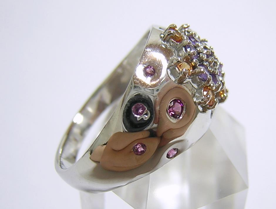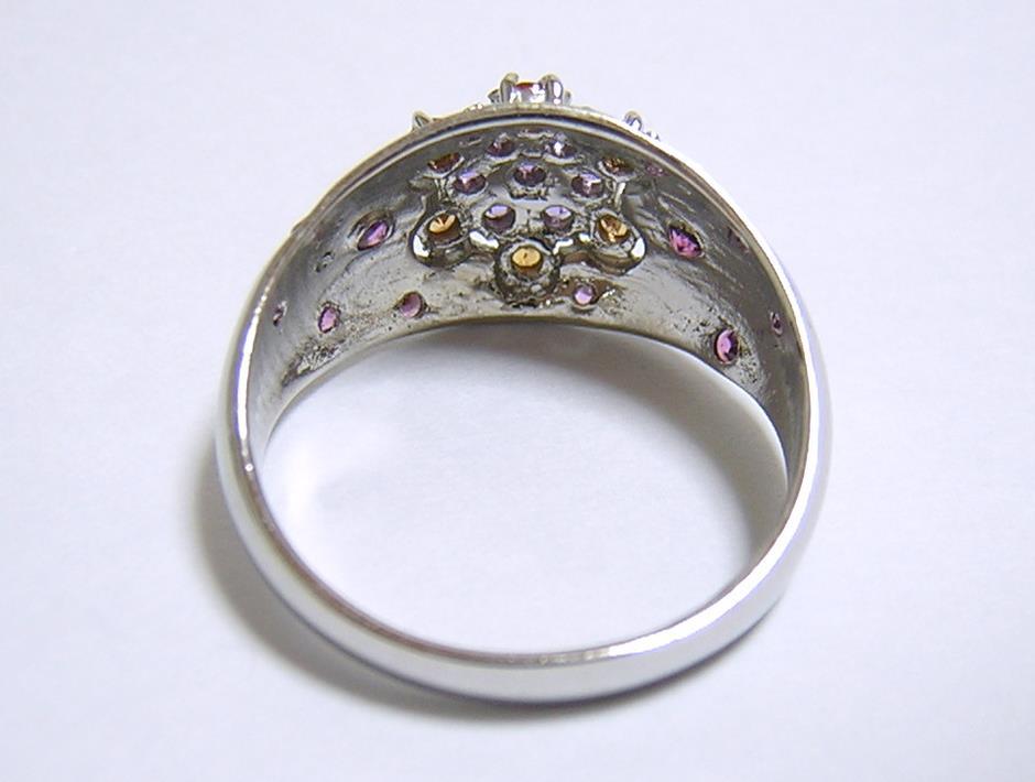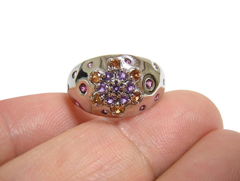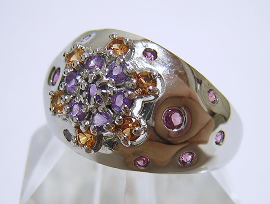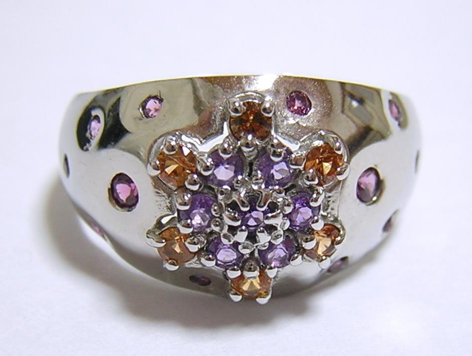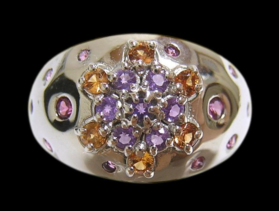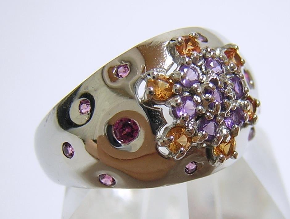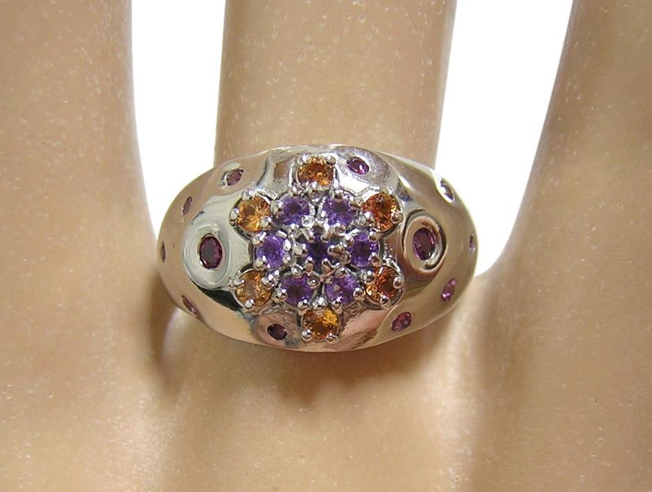 天然アメジストとシトリン、ロードライトガーネットを使用したデザインリングです。