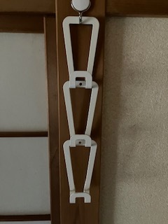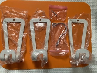 《未使用品》 3連結ハンガー掛け ・素材:スチール製 重量:100g(1個あたり)x3個=総重量300g ・最大で4本のハンガーを掛けられます。 ・最大荷重量ですが本体上部の 取付け状態で 荷重量は相当なものかと思います。 (木用ビス付き) ・厚手なスチール製なので 本体自体のよじれ等の変形は そうないと思います。