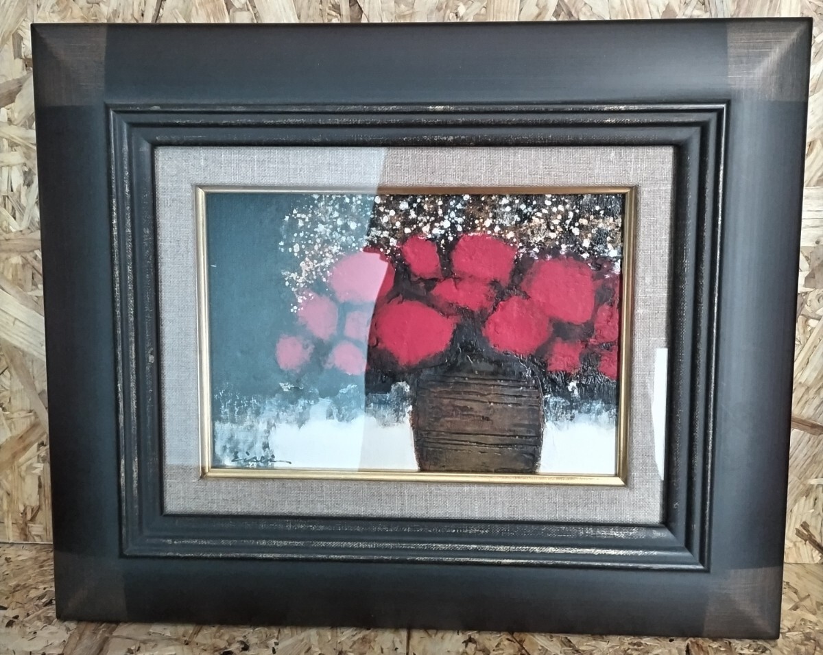 高橋英生 「赤い花」1996年 静物画 油彩画 真作保証 縦32cm 横39cm 收藏