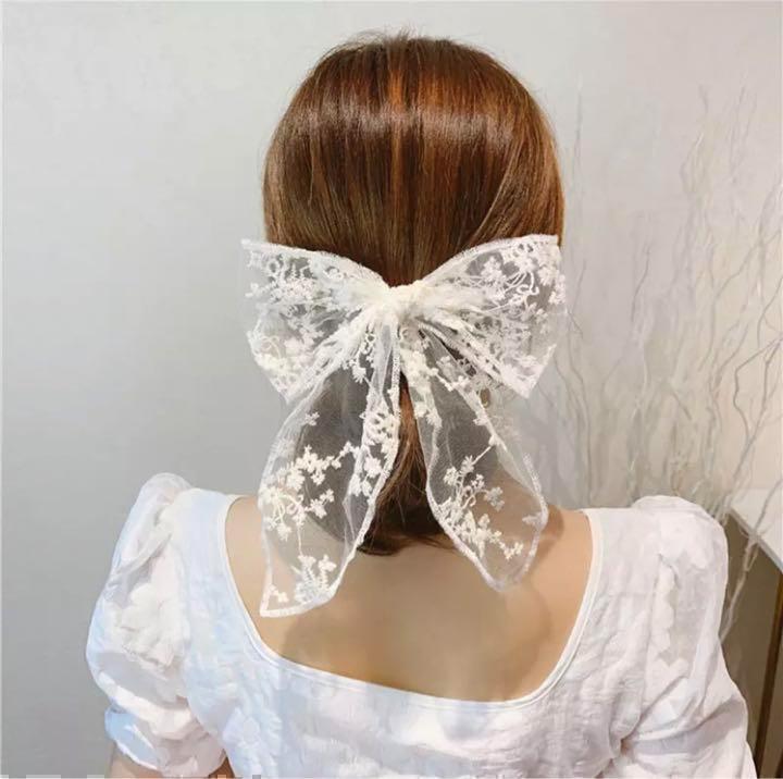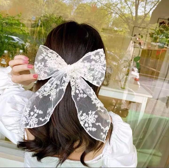 リボン ヘアピン 大きめ バレッタ レース 白 オフホワイト 浴衣 可愛い 收藏