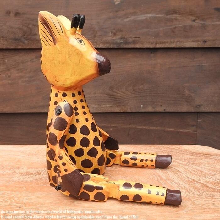 バリ島の職人さんが1点ずつ手彫りして手塗りした、お座りきりんさんのMサイズモデルです。