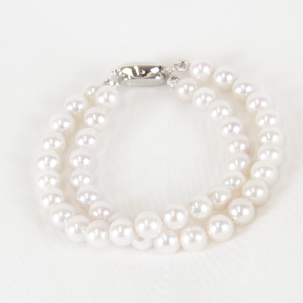 良品『USED』SV パール2連ブレスレット 7mm ブレスレット パール/シルバー925 レディース 本真珠 白 ホワイト パーティ 結婚式 お呼ばれ 收藏