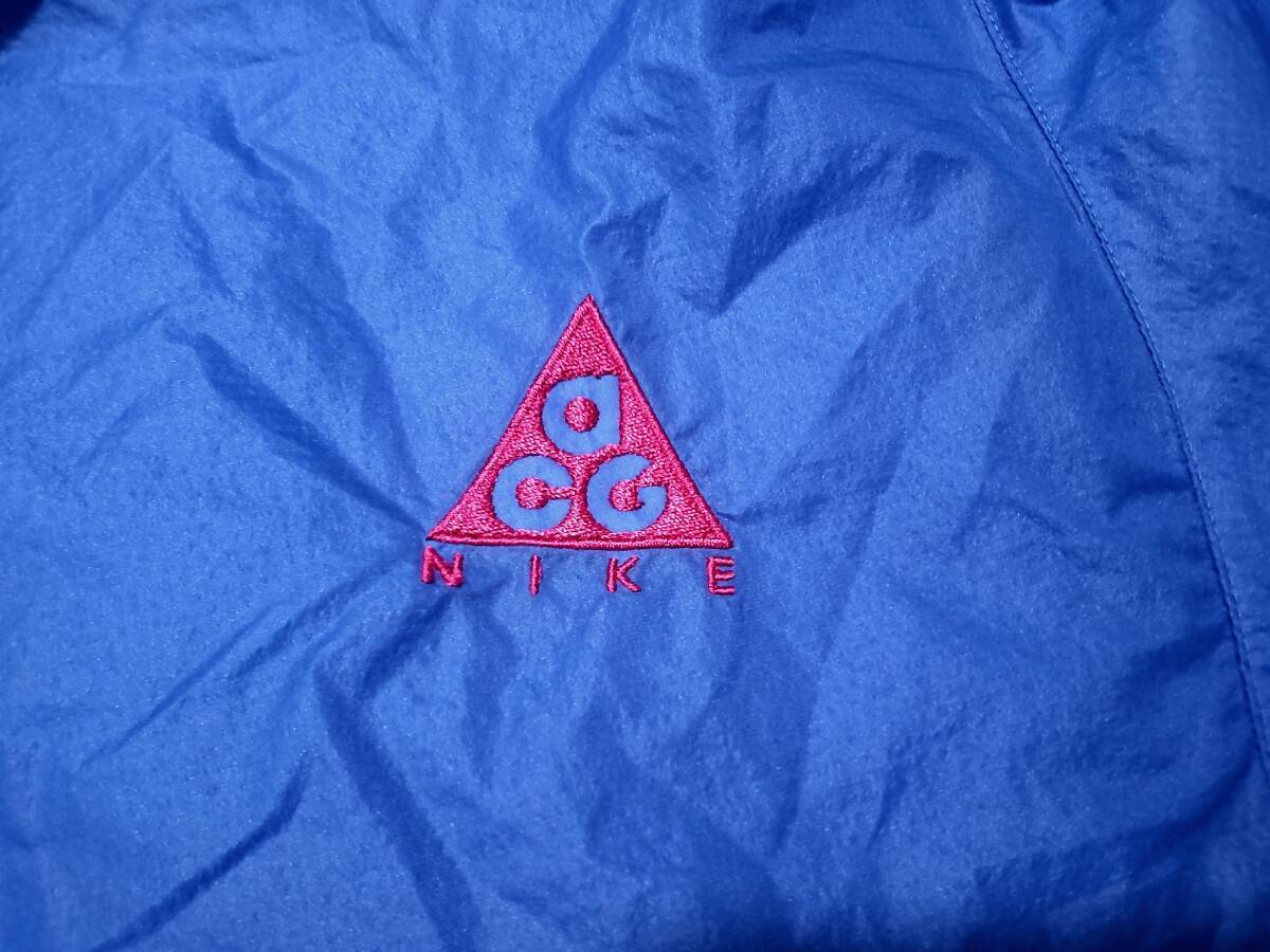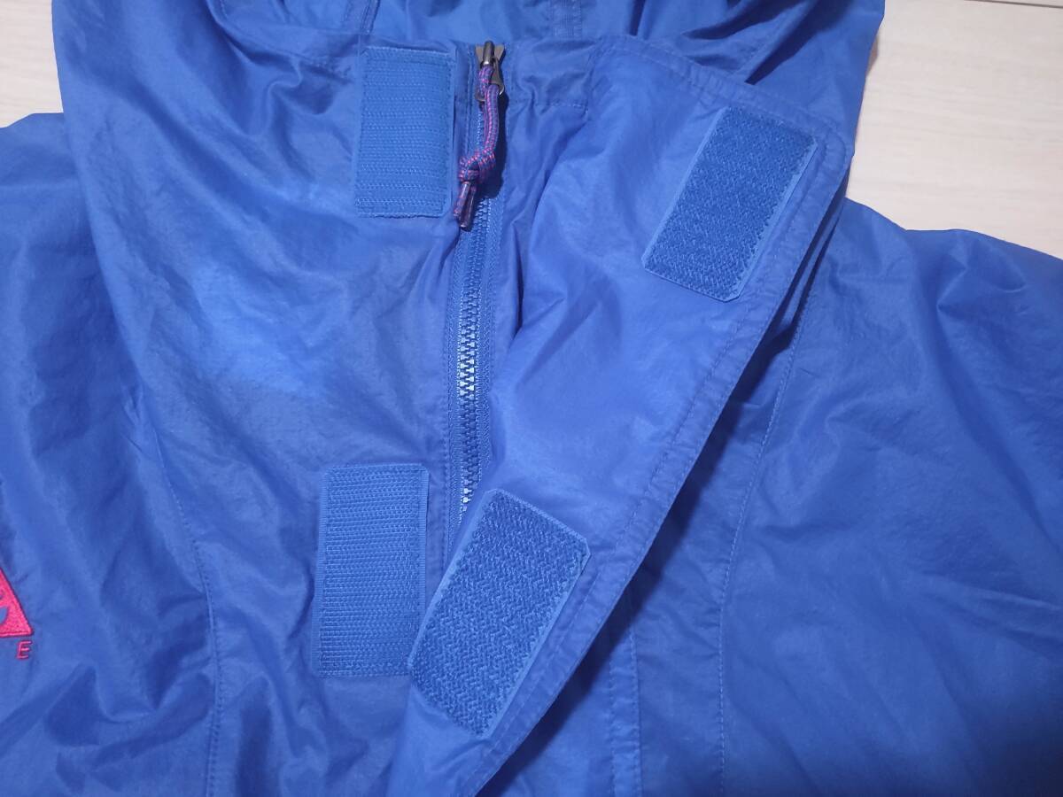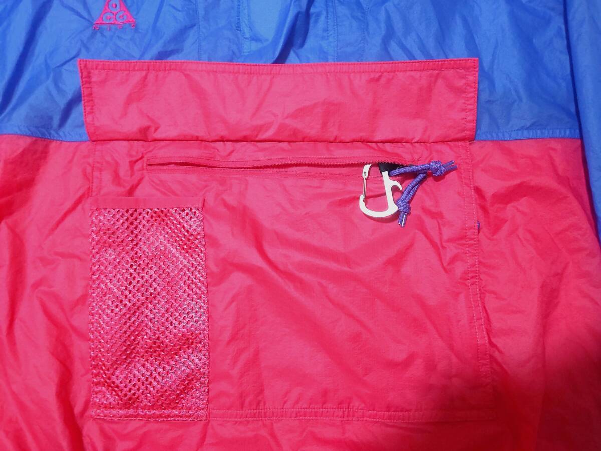 NIKE(ナイキ)のナイロンジャケットです ■モデル名はAS M NRG ACG ANORAK HDです ナイキのアウトドアカテゴリーであるACG(ALL CONDITIONS GEAR)シリーズのものです ■新品未使用です タグも付いております(紙タグに少々ダメージがあります) ■サイズはMになります 素人採寸ですが 身幅(脇の下で)66cm 着丈(背面側で)68cm 裄丈89cm ありました 大きめの作りとなっております ■生地はナイロンです 薄手でとても軽量に作られております 急な小雨に対応出来ます ■プルオーバーのスタイルです 胸付近までジッパーが付いております ■色は青とピンク系のツートンになります ■パッカブルです ジャケット本体を正面のポケットに折り畳んで収納出来ます 持ち運びに便利です カラビナが付いておりバックパック等に取り付ける事も出来ます ■正面にはさらにメッシュのポケットも付いております ■フードはドローコードで締めることが出来ます ■右胸にはNIKE ACGのマークが付いております ■1枚あると便利です ■是非よろしくお願い致します
