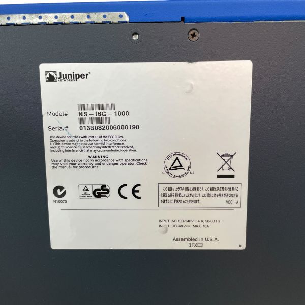 Juniper NETWORKS ISG1000 NS-ISG-1000 ネットワーク セキュリティアプライアンス NO.Y7004 收藏