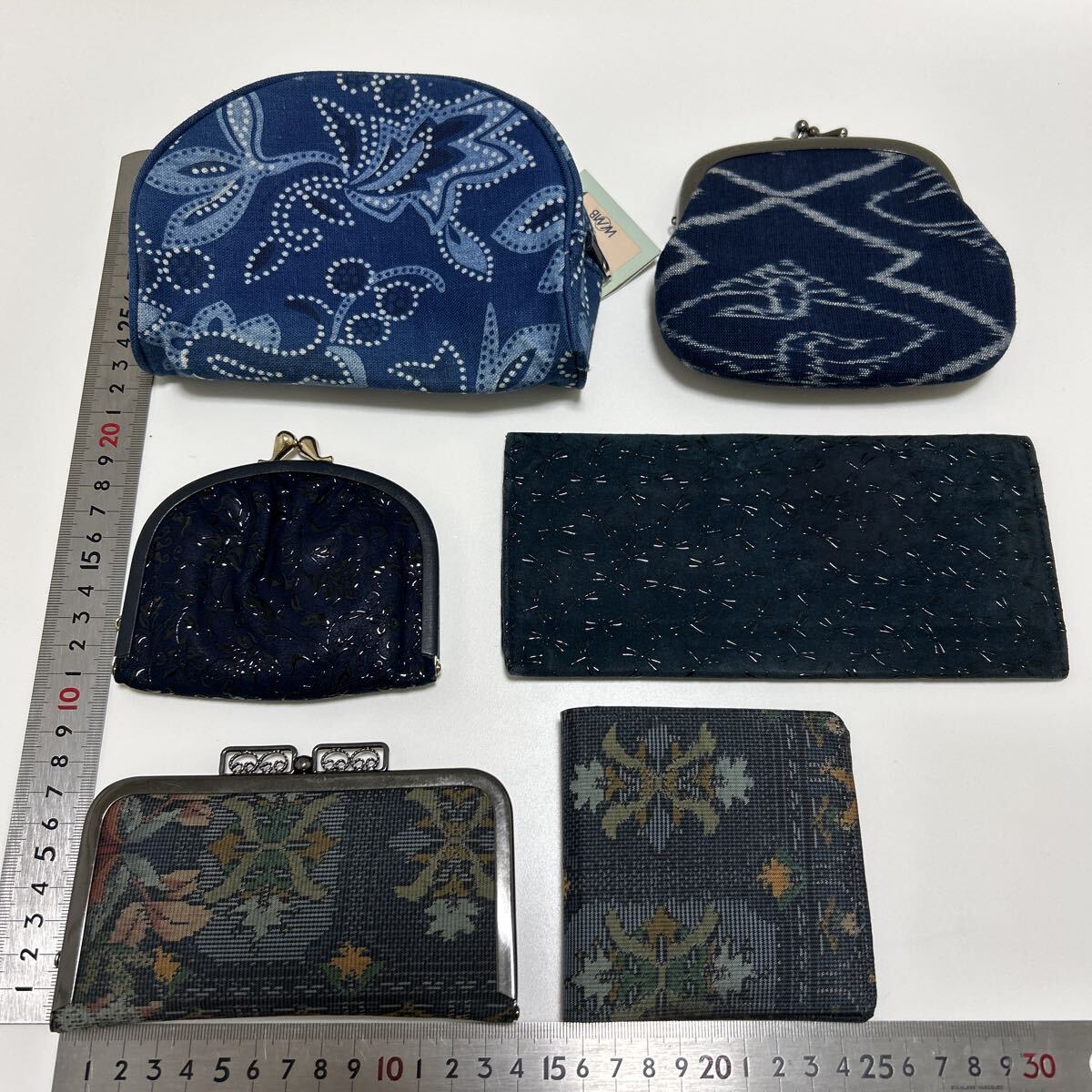◆紺色 和柄 財布&がま口 小銭入れ&ポーチ 6点セット-未使用品あり◆ 印傳屋 INDEN-YA 大島紬 楽布 藍染 【送料無料】0908 收藏
