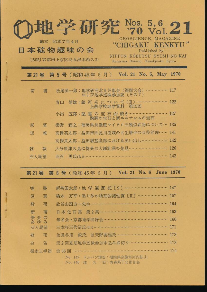 | 第1、2号、第3,4号、第5,6号、第9,10号の4冊です。 出版社:日本礦物趣味の會(1970) 会誌: | ||