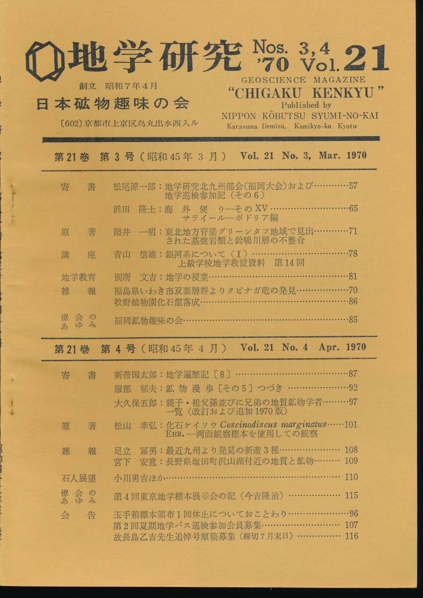 ☆『総合地学雑誌 地学研究 第21巻 4冊』化石・地形・岩石・鉱業史・鉱山学・鉱物・鉱床学・鉱石・地下資源・地質 收藏