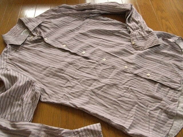 ユナイテッドアローズ かっこいい長袖ドレスシャツ レッド&ネイビー&ホワイト ストライプ サイズL 收藏