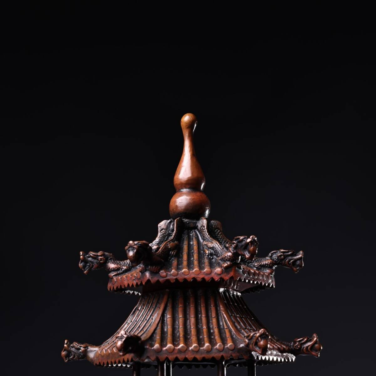 清代 銅製・純銅 エンボス工法 鳳耳塔 燻香炉・文案置物 極細工 東洋彫刻・骨董品・古賞物・中国古玩・中国古美術wn9.12 收藏