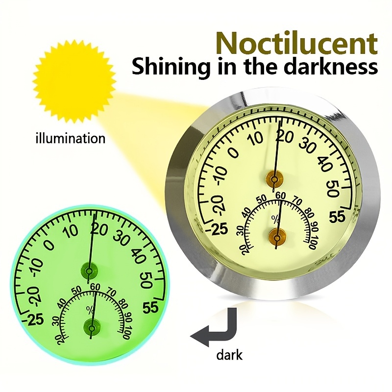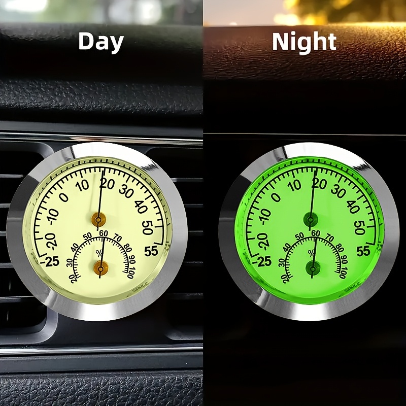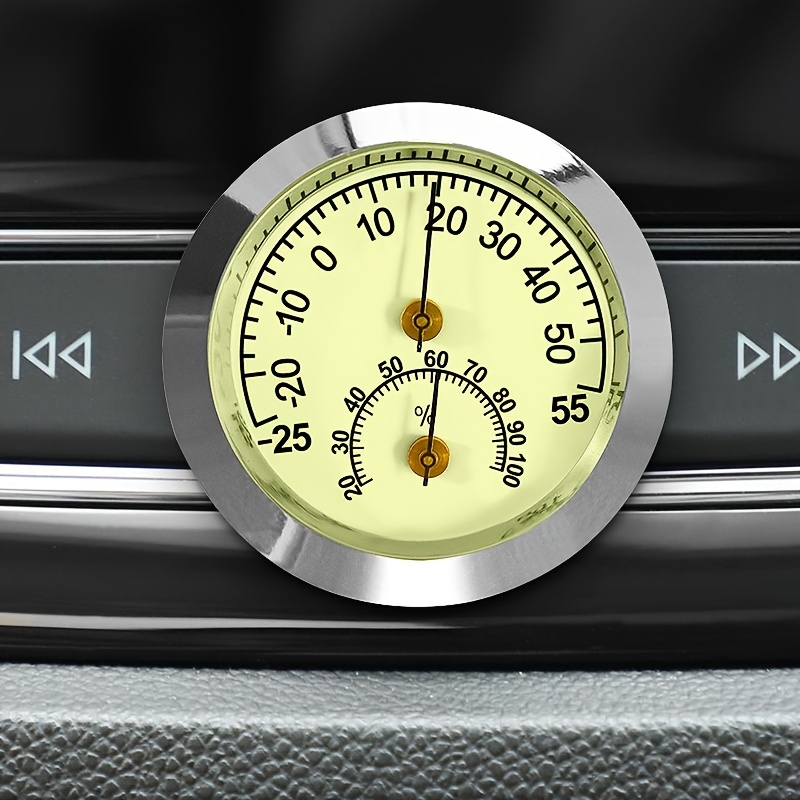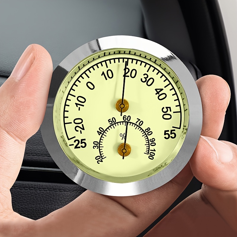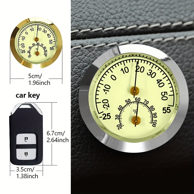 温度計 湿度計 車用 ミニ 車載用時計 シルバー クリーム色 5cm 蛍光 夜間発光 車用 クリップ式 貼り付け シール 電池不要 見やすい t6553 收藏